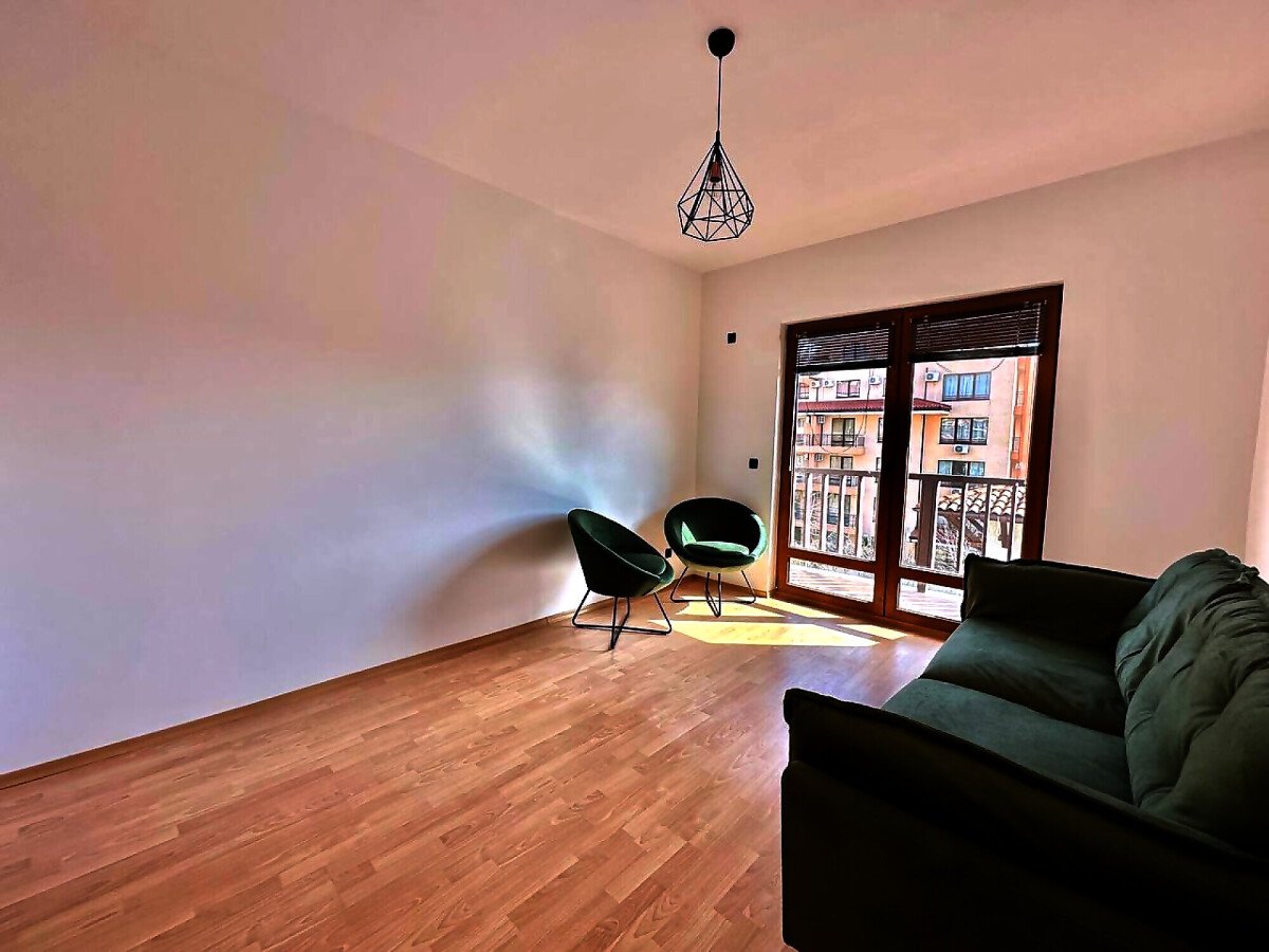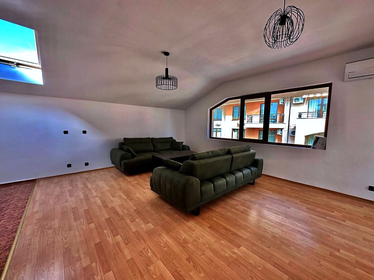 Жилището е много просторно и се състои от входно антре, голяма всекидневна, две спални, баня с тоалетна, тераса с частична гледка към морето. Продава се частично обзаведено, във всекидневната има климатик. Банята е напълно завършена и функционална, а апартаментът е „до ключ“, готов за обзавеждане.