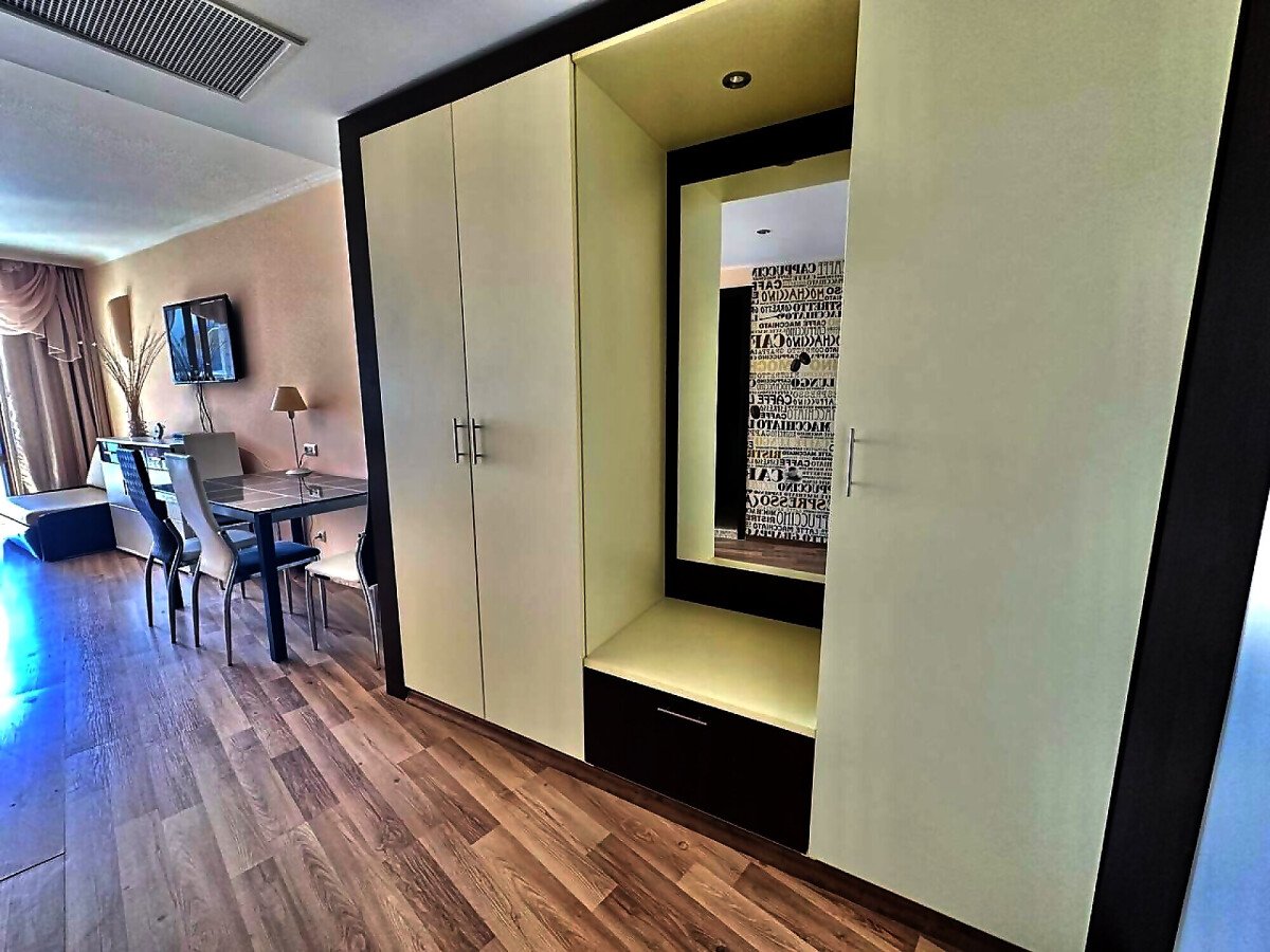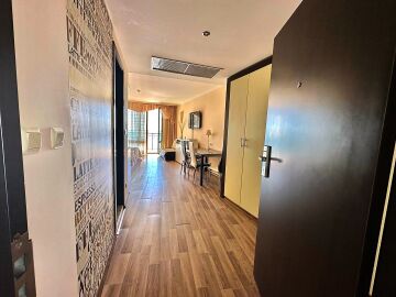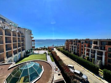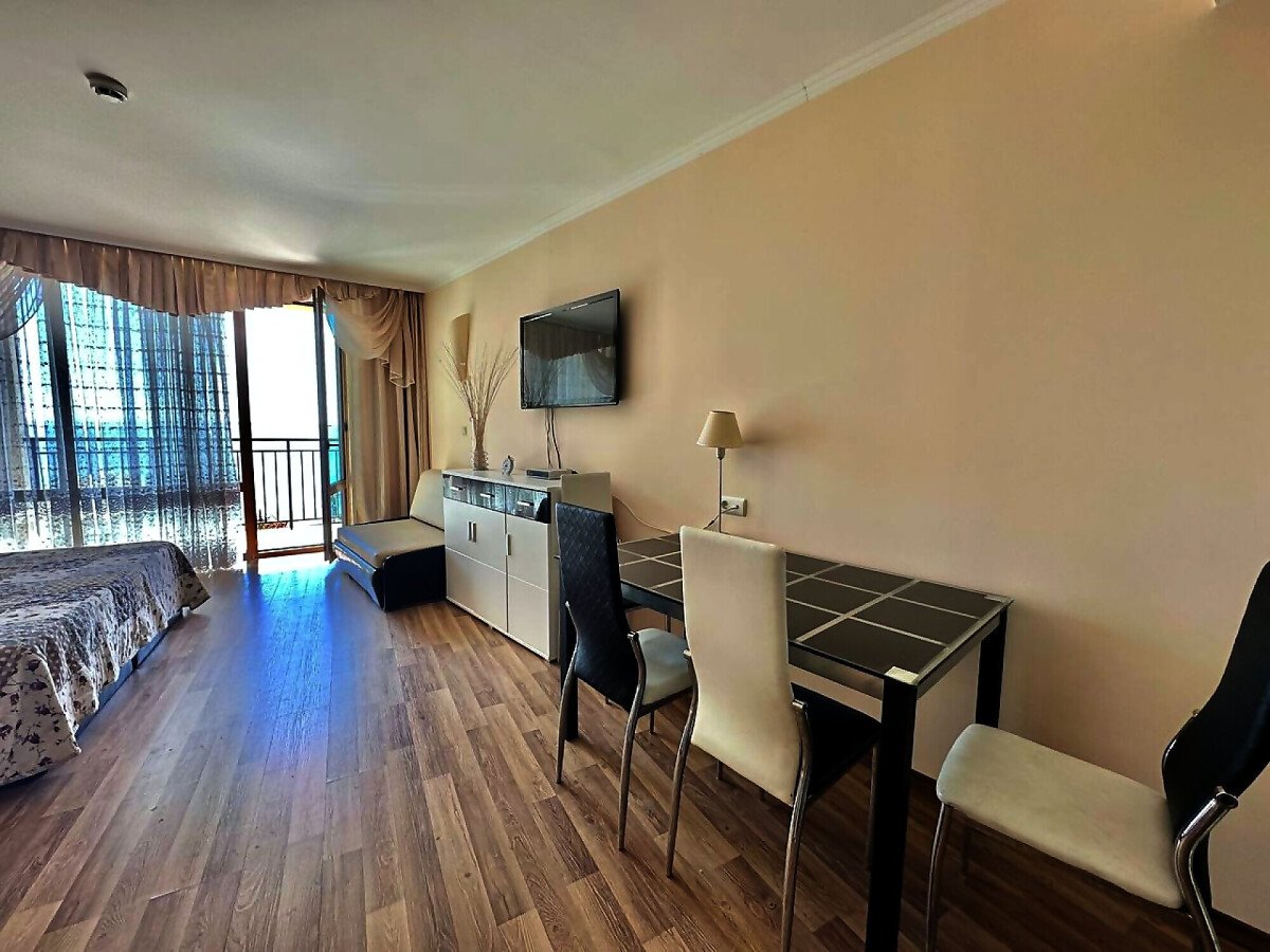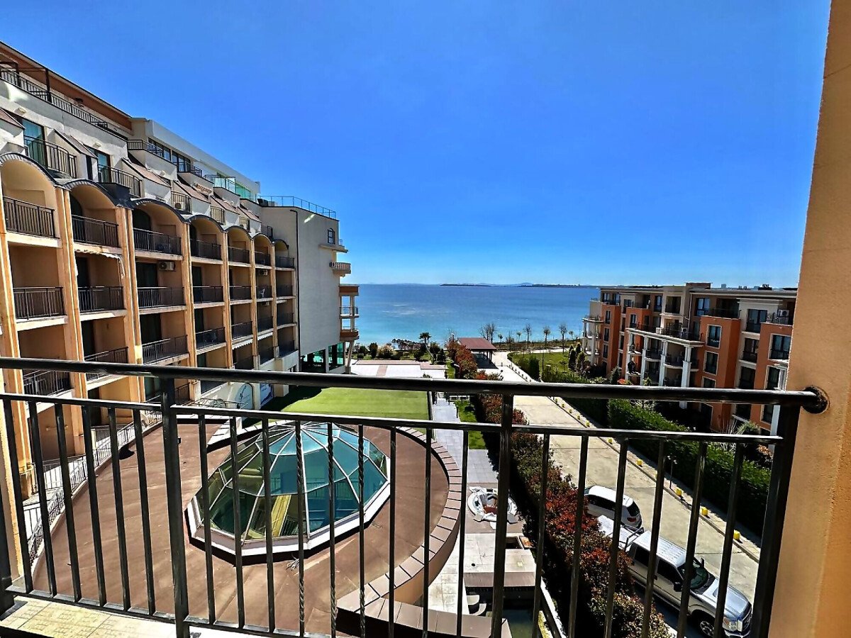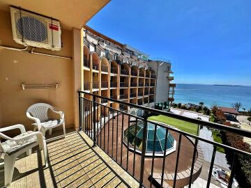 Предлагаме за продажба уникален двустаен апартамент с панорамна гледка към морето в комплекс „Гранд Хотел Свети Влас“, разположен на метри от плажната ивица в морския курорт Свети Влас. Това е прекрасен комплекс, построен в съвременен, средиземноморски стил.