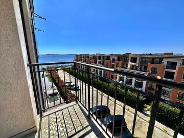 Апартаментът е слънчев и много просторен, със следното разпределение – входно антре, всекидневна с обособен кът за хранене и кухненски бокс, спалня, две бани с тоалетна и душ кабина, две тераси. И двете тераси разкриват невероятна панорамна гледка към морето и басейна. Продава се обзаведен с качествени и стилни мебели, напълно оборудван, в отлично състояние, готов за нанасяне.