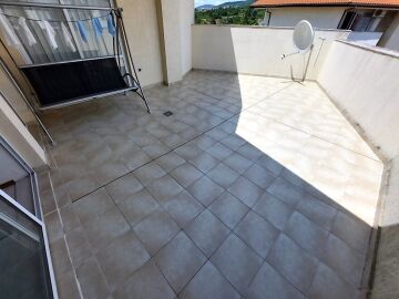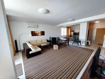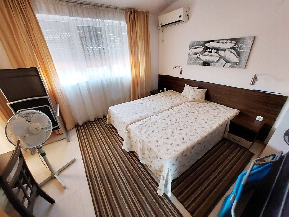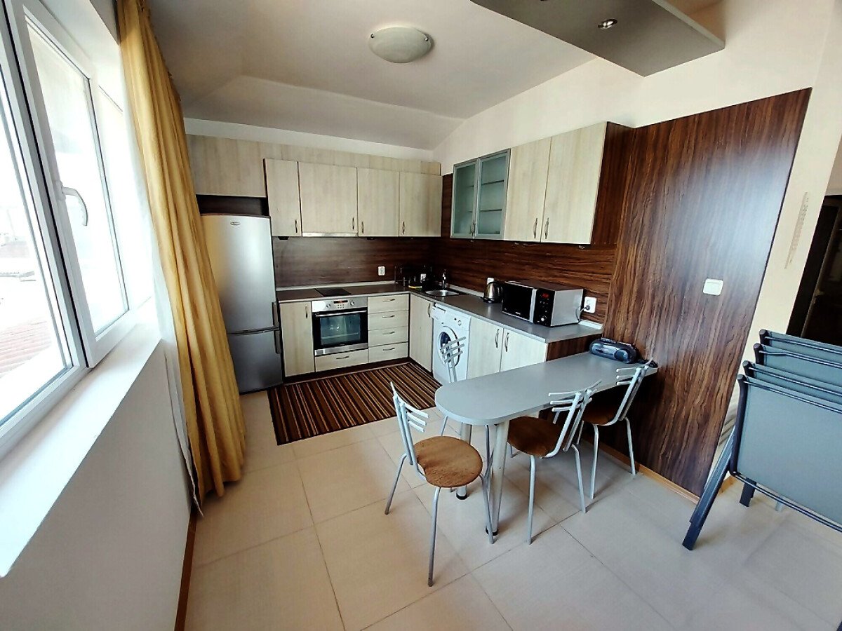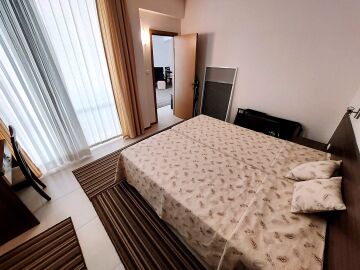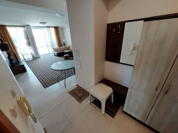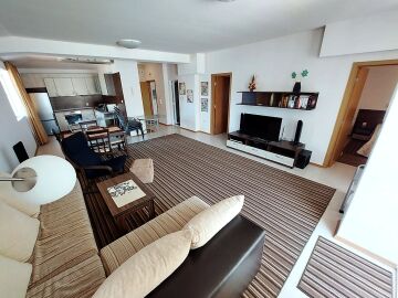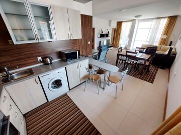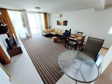 Апартаментът е в отлично състояние, напълно оборудван с необходимата техника, обзаведен, готов за нанасяне. Имотът е слънчев и много функционален, със следното разпределение – входно антре, голяма всекидневна с обособена зона за хранене и кухня, две спални, две бани с тоалетна и душ кабина, две тераси. Едната от терасите разкрива красива гледка към планината. Жилището е много подходящо както за лятна почивка и отдаване под наем, така и за лично ползване.