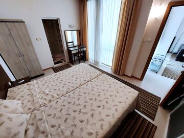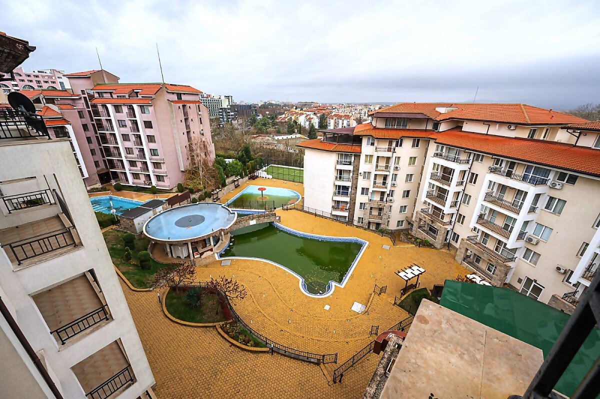 Предлагаме за продажба просторен тристаен апартамент в комплекс „Съни Бийч Хилс“, разположен в курорта Слънчев бряг, само на 300 метра пешеходно разстояние до плажната ивица и морето. Локацията е отлична – в близост до удобни автобусни спирки и супермаркет, на 500 метра от централната алея на курорта. Там може да откриете и да се насладите на разнообразие от магазини, заведения, летни атракции, ресторанти и кафенета, барове и клубове.