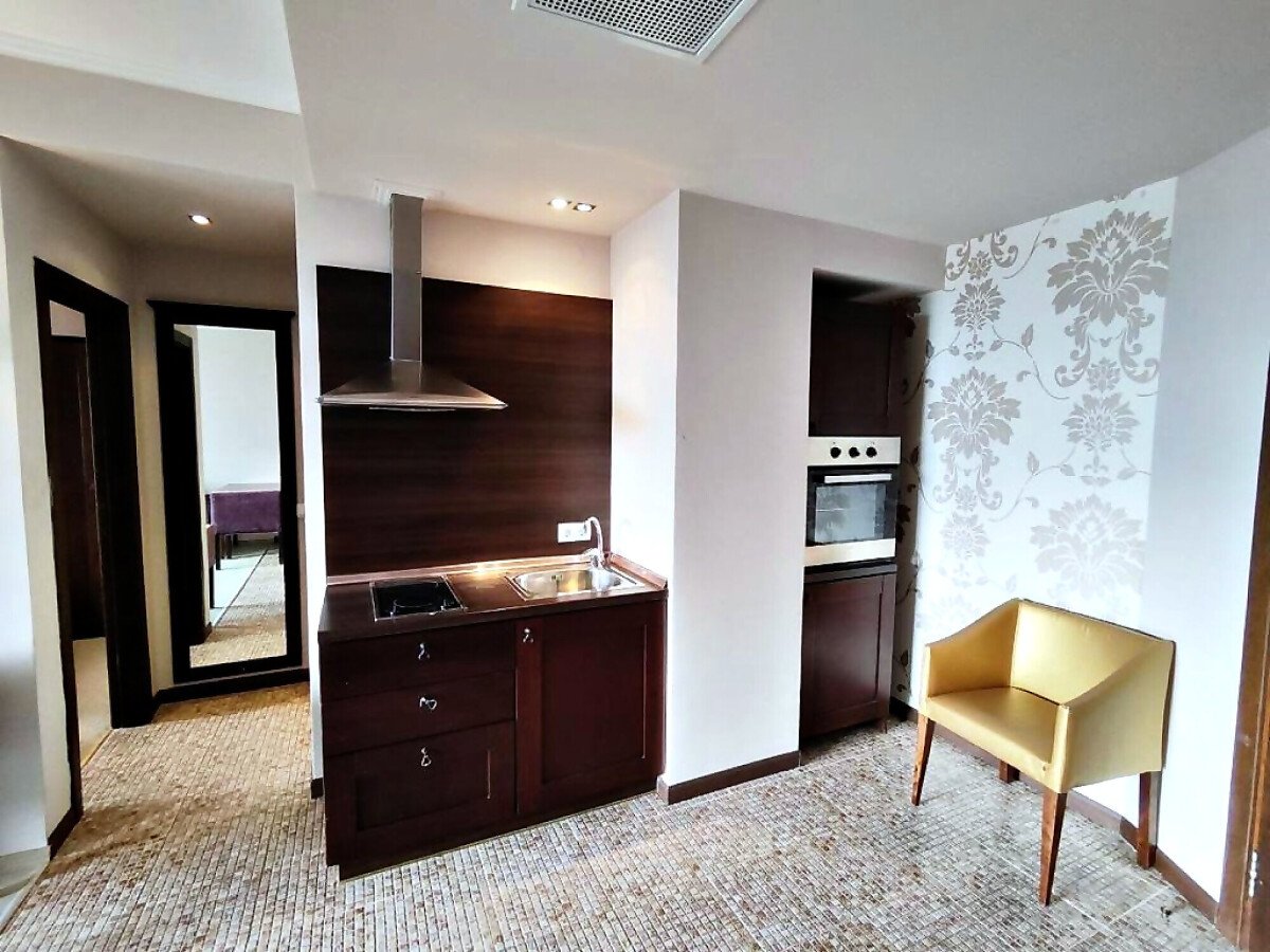 Апартаментът е светъл и много функционален, в отлично състояние и има следното разпределение – всекидневна с кухненски бокс и обособен кът за хранене, спалня, баня с тоалетна и вана и тераса с гледка към планината. Жилището е напълно обзаведено и оборудвано с всички необходими електроуреди,както е на снимките, готово за нанасяне.