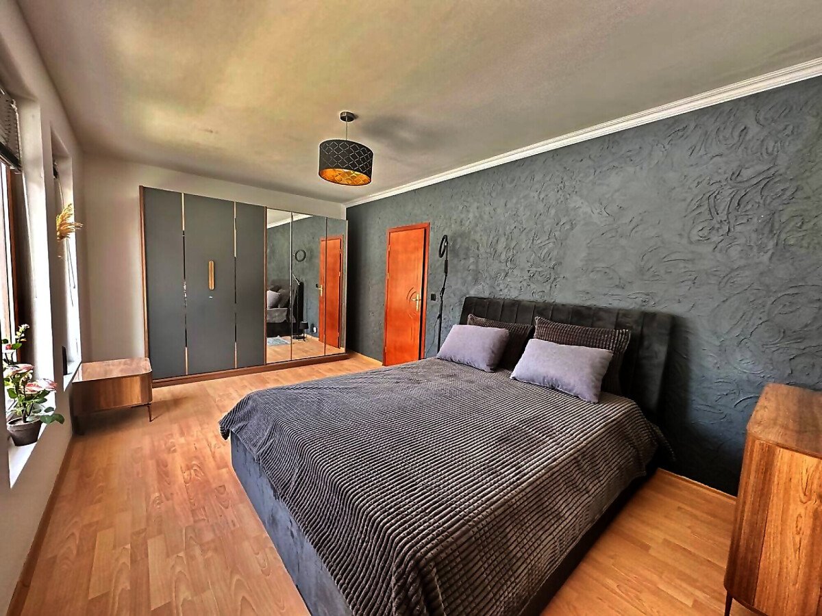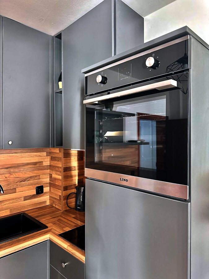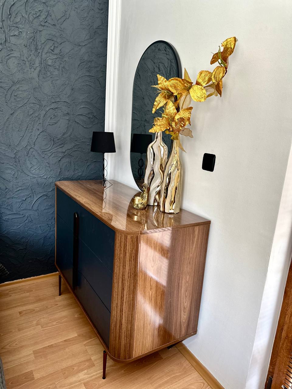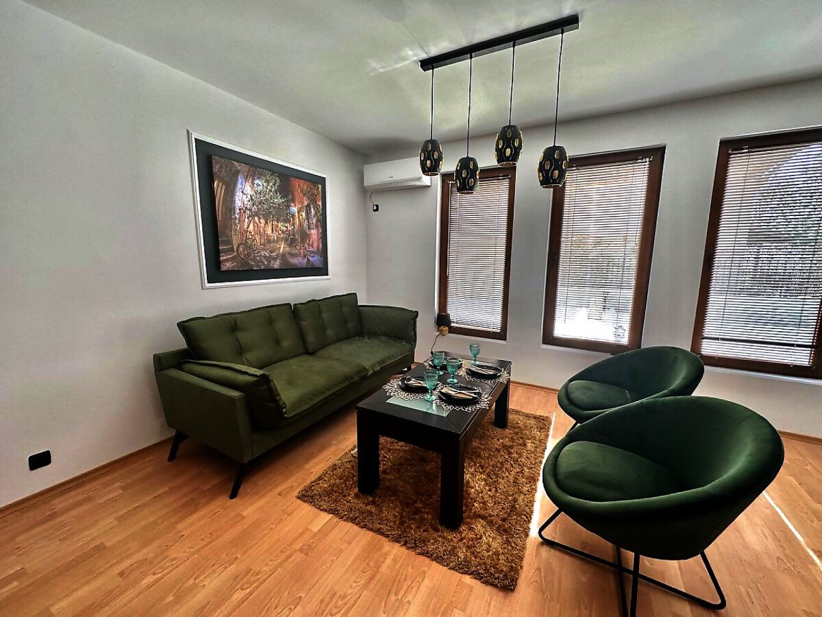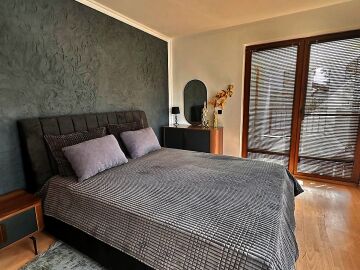 Апартаментът е много просторен и светъл, със следното разпределение - входно антре, голяма всекидневна с кухненски бокс и обособена зона за хранене, спалня, баня с тоалетна и душ кабина, тераса. Продава се чисто нов, в отлично състояние, обзаведен със стилни и качествени мебели, оборудван с домакинска техника, готов за нанасяне.