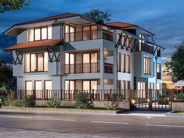 Комплексът впечатлява с висококачествено строителство и чудесно местоположение - намира се в началото на курорта, в близост до голям супермаркет, удобни автобусни спирки, ресторанти и кафенета, летни атракции. Благодарение на това имотът е много подходящ както летен отдих и отдаване под наем, така и за постоянно живеене.