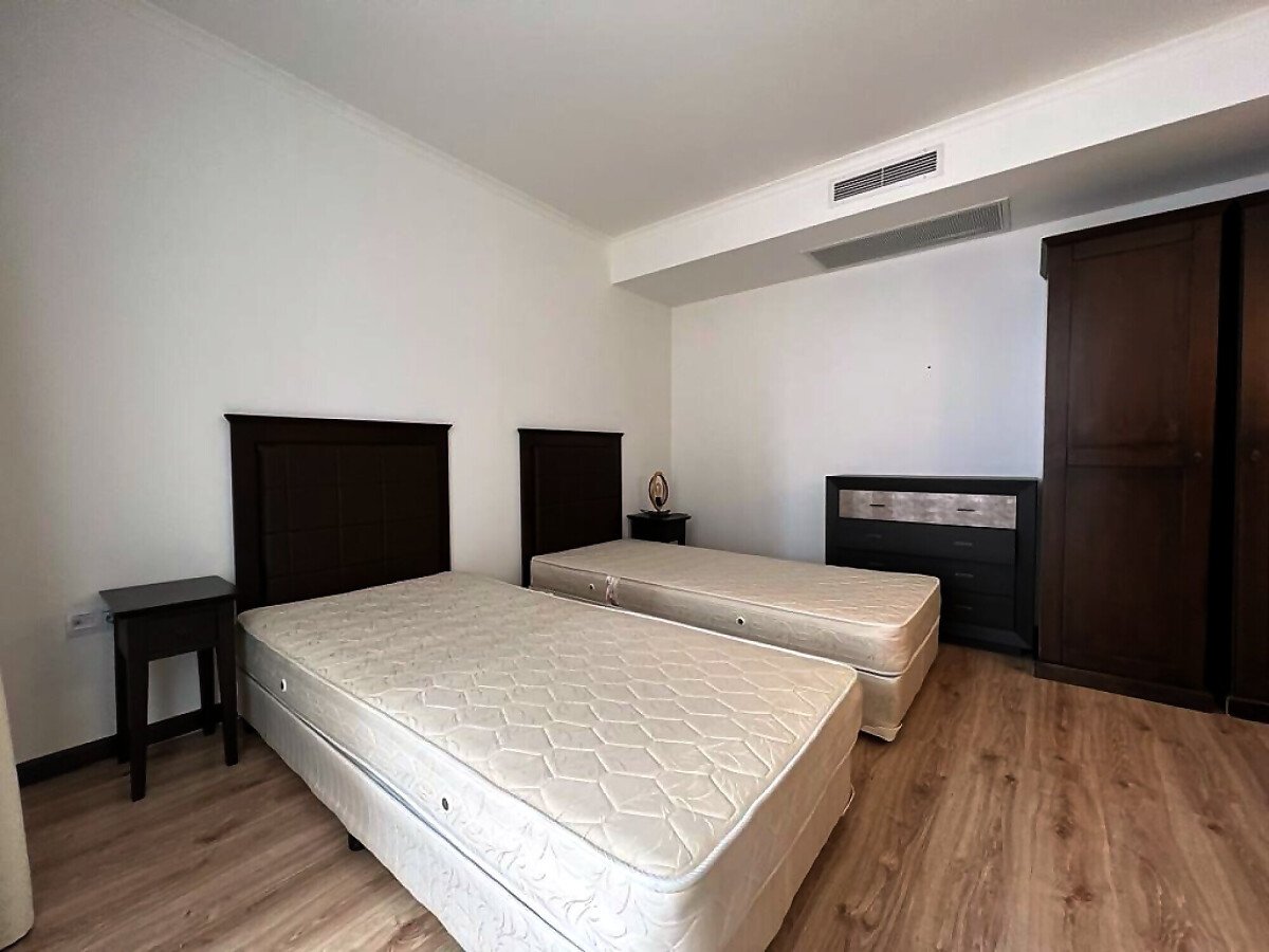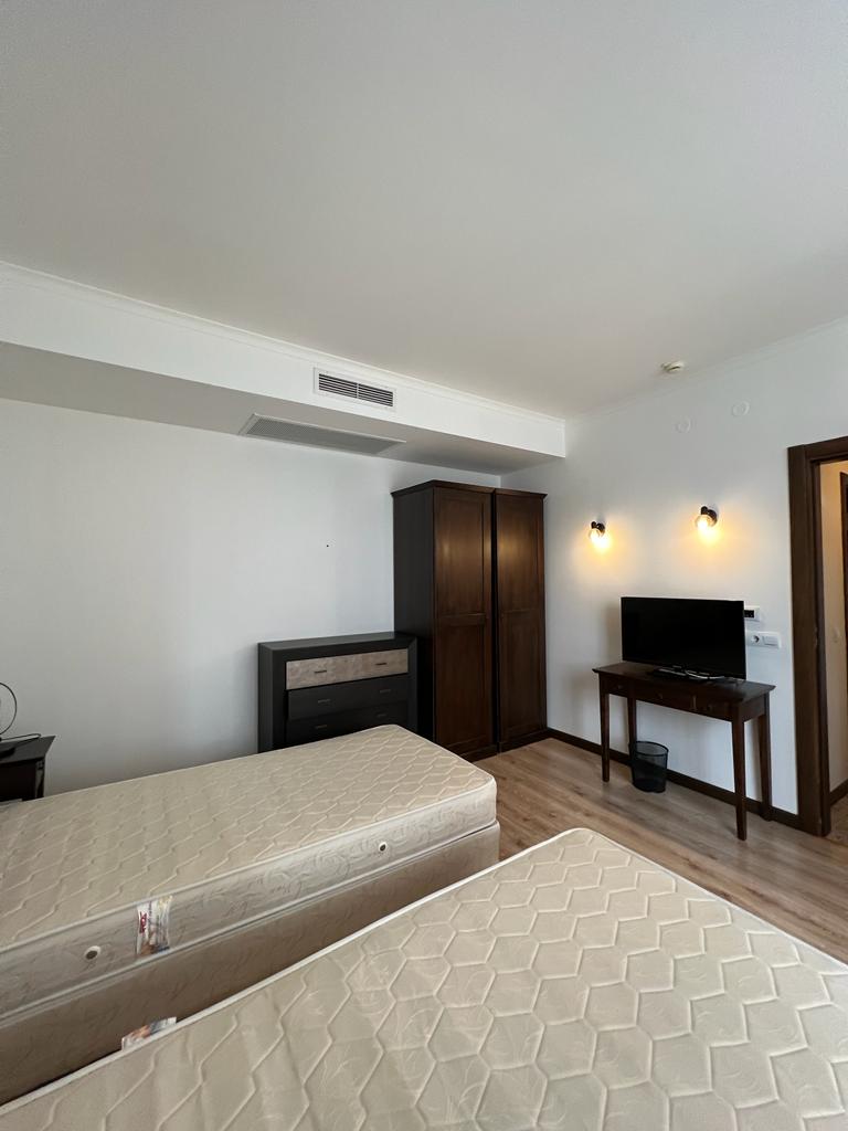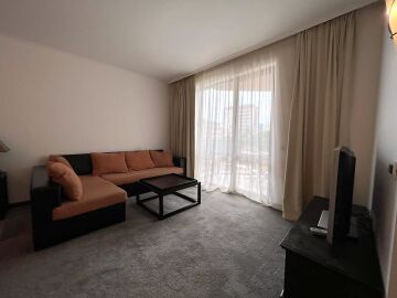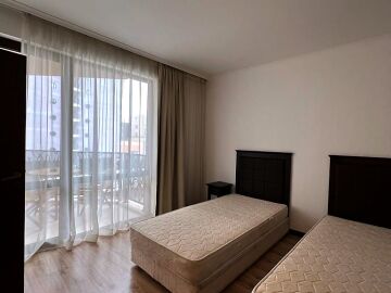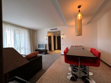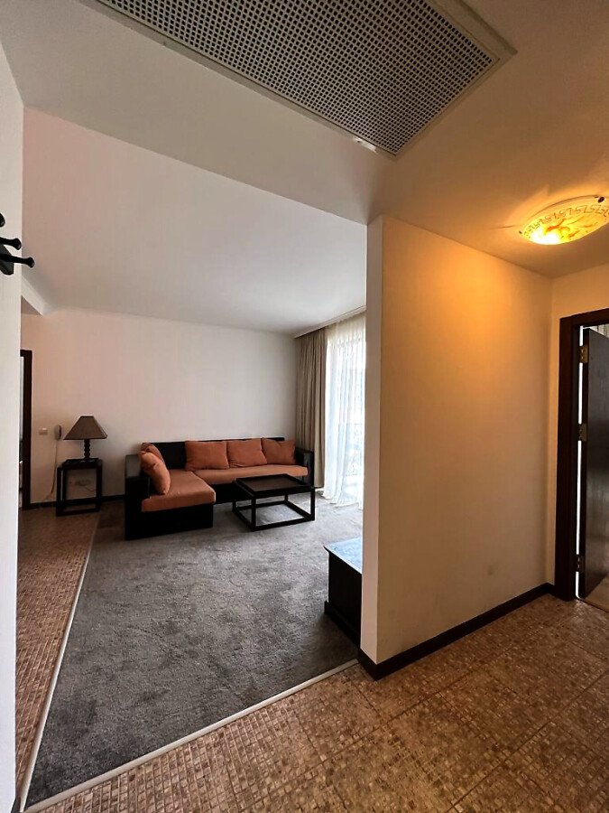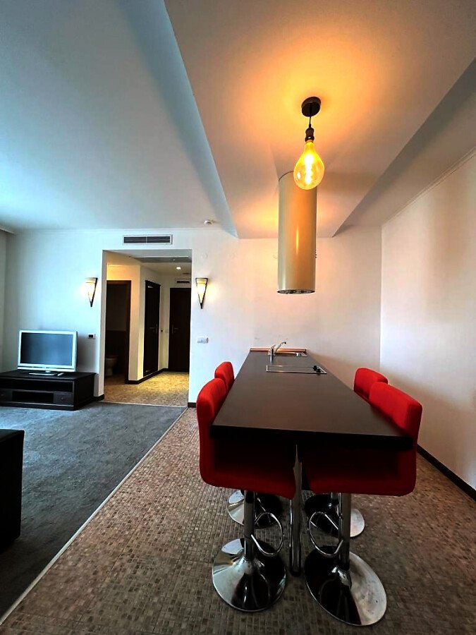 Апартаментът е просторен и много функционален, със следното разпределение – входно антре, всекидневна с малък кухненски бокс, две спални, баня с тоалетна и вана, отделна тоалетна, две тераси. Едната от терасите разкрива невероятна гледка към басейна, а другата – към вътрешната част на комплекса. Продава се в отлично състояние, напълно обзаведен с хубави мебели, оборудван с необходимата техника, готов за нанасяне.
