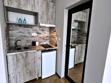 Предлагаме за продажба стилно обзаведено студио в комплекс „Свети Никола“, разположен на живописно място в подножието Стара Планина, в курортното селище Кошарица. Местоположението е отлично – в екологично чист район, съчетаващ спокойствие и тишина и уникални гледки към планината, морето и залива.