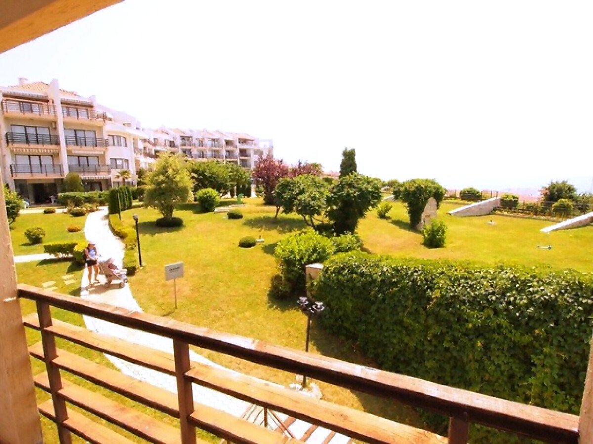 Имотът се намира в комплекс „Диамант“ в Свети Влас, който е разположен на първа линия до морския бряг. Всички апартаменти в комплекса разполагат с тераса с изглед към морето, от където се разкрива спираща дъха панорамна гледка към залива на Слънчев бряг и Несебър. Два басейна с шезлонги и чадъри, много зелени площи, първокласни водни барове, пиано бар, фитнес център и салон за красота са само част от удобствата, които комплексът предлага. Можете да се насладите на приятна вечеря в изискания ресторант към комплекса, разположен на просторна веранда с гледка към яхтеното пристанище.