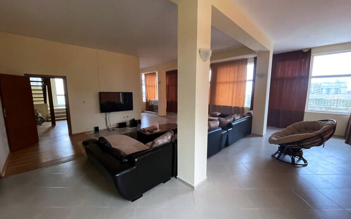 Втори етаж – кухня с трапезария, три спални, три бани с тоалетна, две тераси.