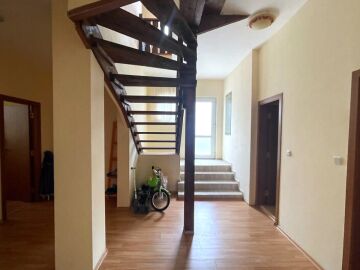 Първи етаж – голямо входно антре, просторна всекидневна, две спални, две бани с тоалетна, складово помещение;