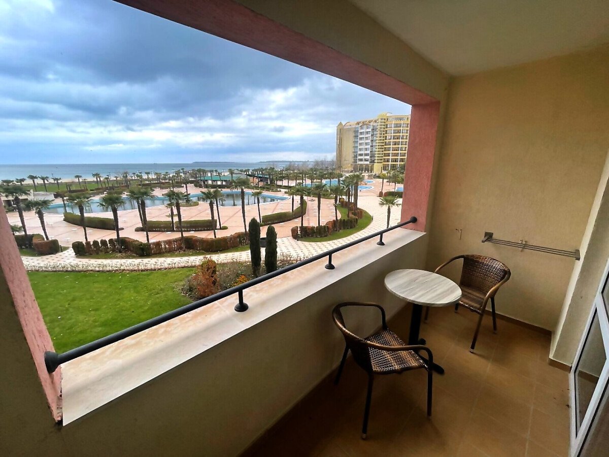Предлагаме за продажба прекрасен двустаен апартамент с уникална панорамна гледка към морето в комплекс „Маджестик“, разположен в северната част на атрактивния морски курорт Слънчев бряг, на първа линия море. Плажът е точно пред комплекса, на метри пешеходно разстояние.