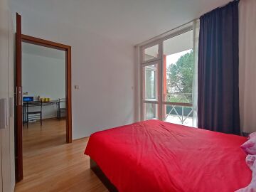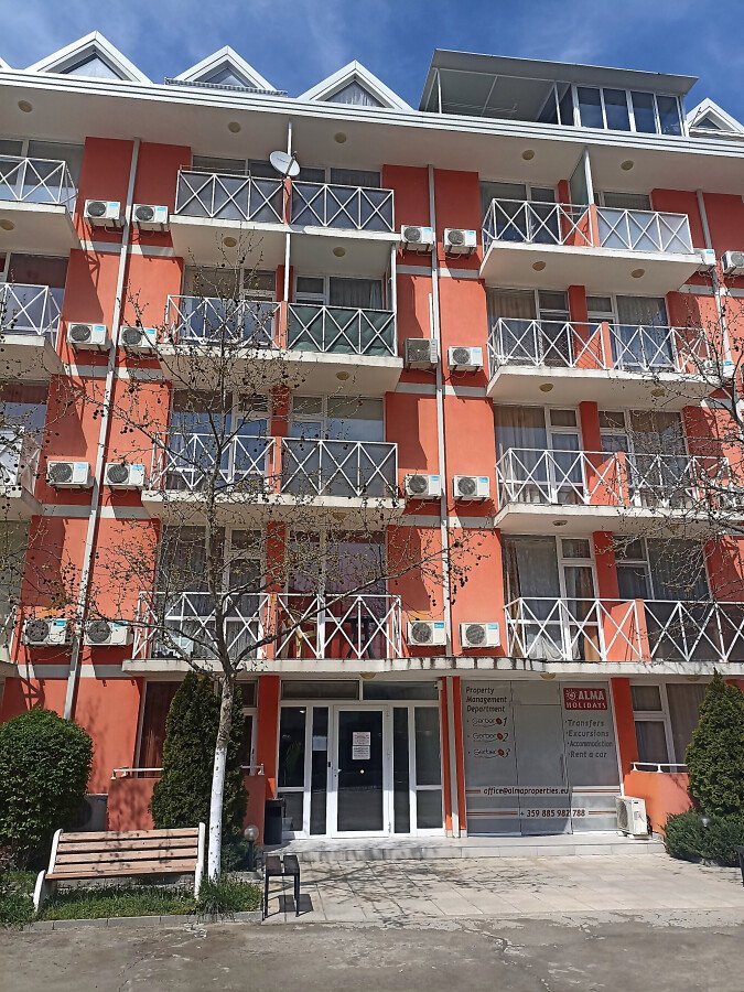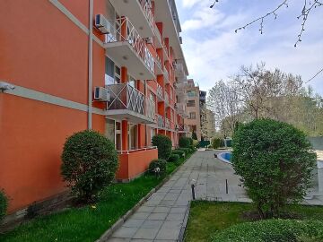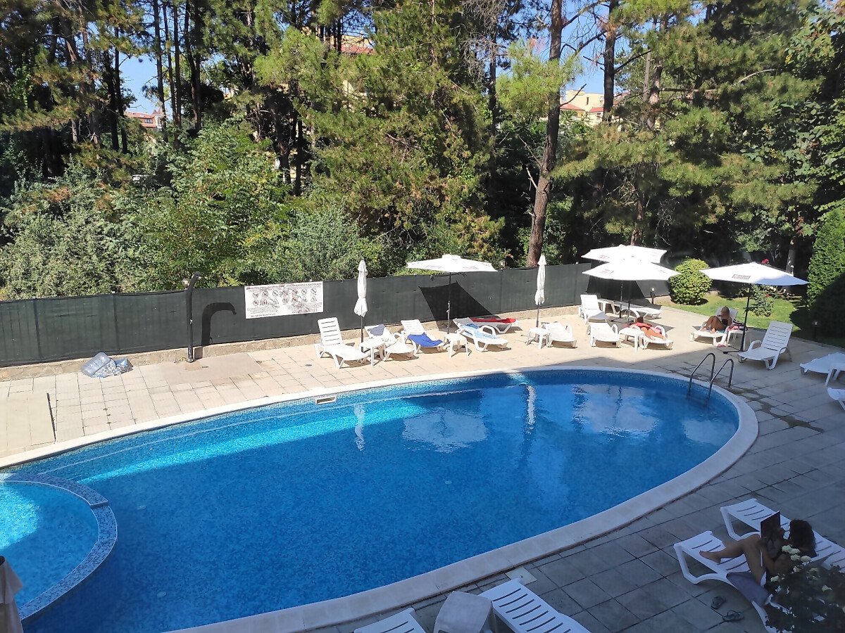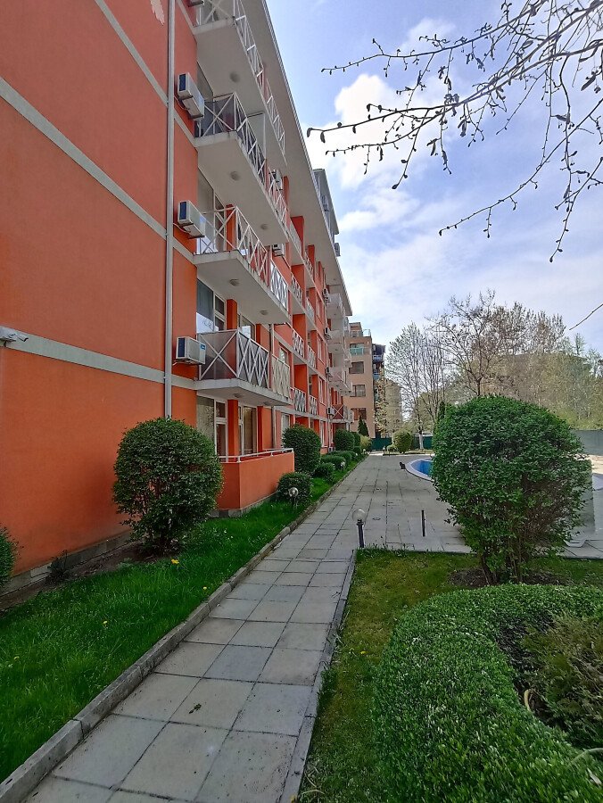 Предлагаме за продажба двустаен апартамент с гледка към басейна в комплекс „Гербер Резидънс 1“, разположен само на 450 метра разстояние от плажната ивица и морето в атрактивния курорт Слънчев бряг. Комплексът се намира на тихо и спокойно място, в западната част на курорта. Благодарение на отличната локация, имотът е много подходящ както за спокоен летен отдих, така и за постоянно живеене.