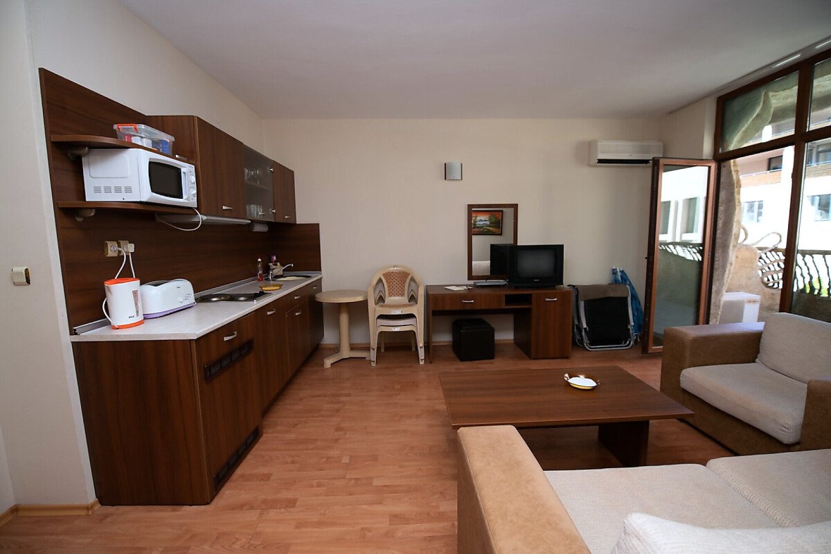 Предлагаме за продажба тристаен апартамент в комплекс „Гренада“, разположен на втора линия от морето в популярния морски курорт Слънчев бряг. Намира се в южната част на курорта, само на 50 метра от плажната ивица.