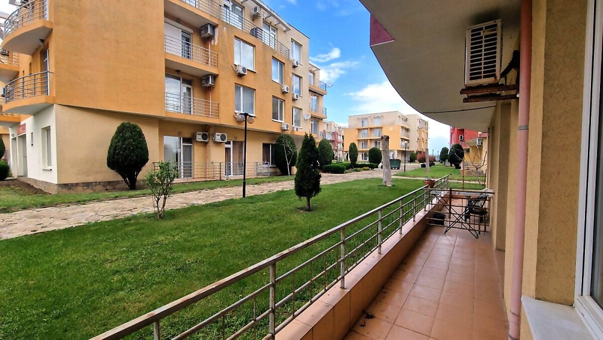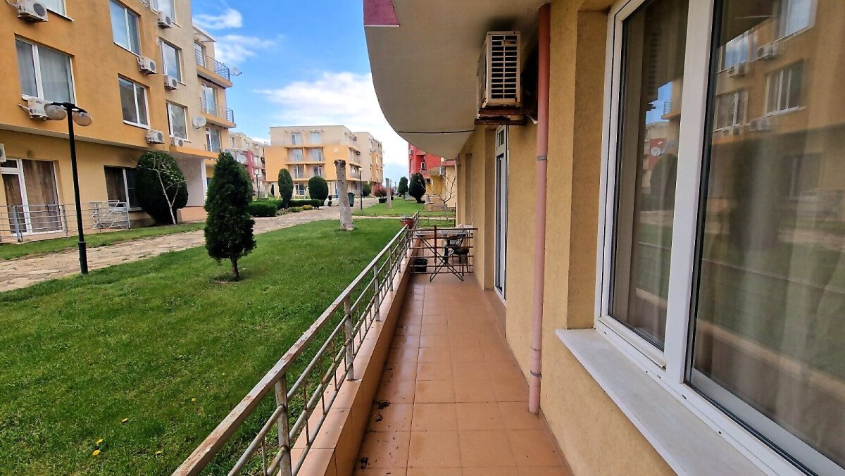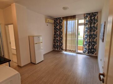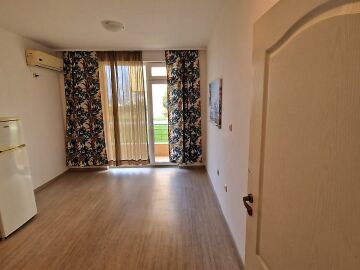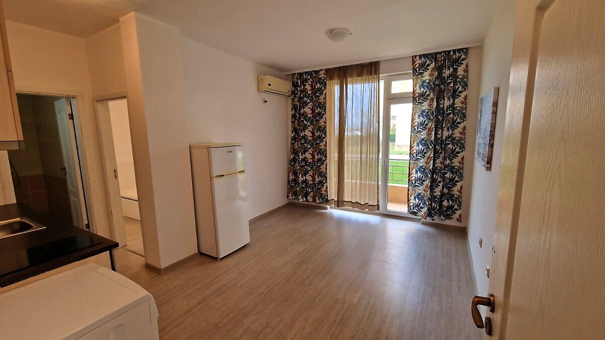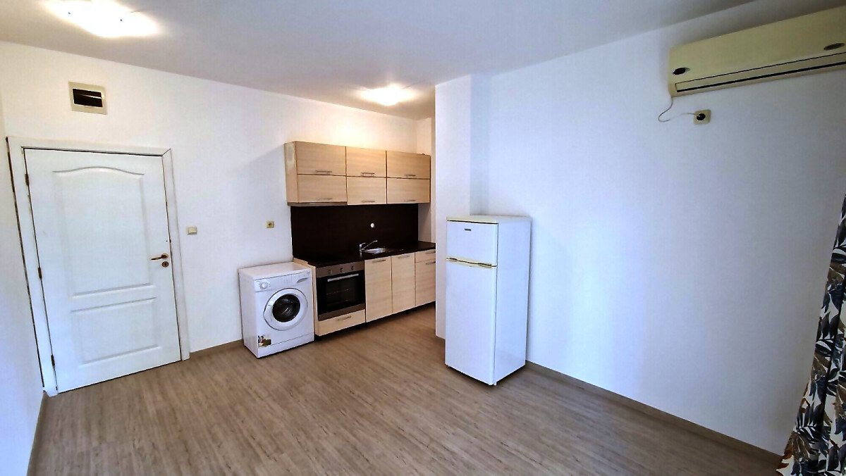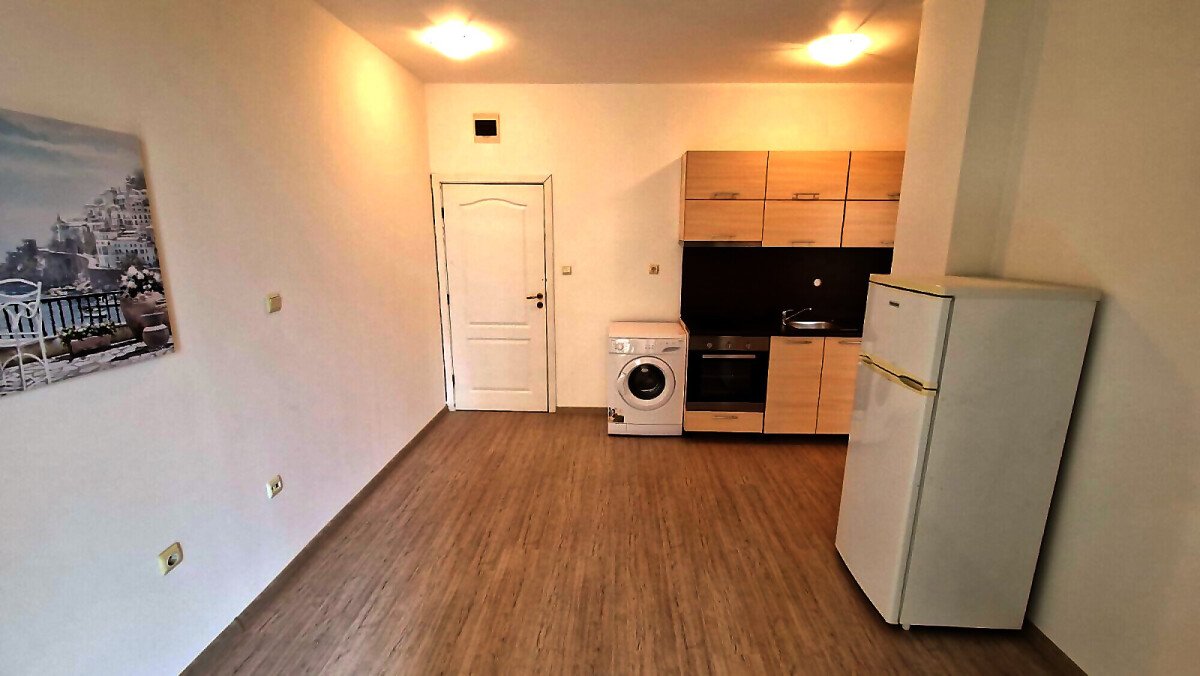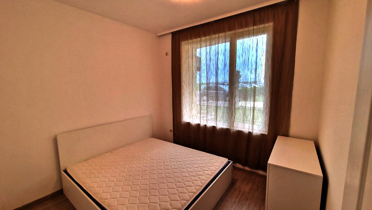 Апартаментът е функционален, със следното разпределение – всекидневна с кухненски бокс, баня с тоалетна, спалня, тераса с гледка към озеленената вътрешна територия на комплекса. Продава се частично обзаведен и оборудван, в много добро състояние.