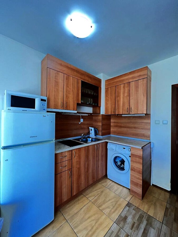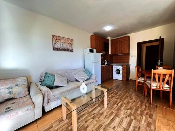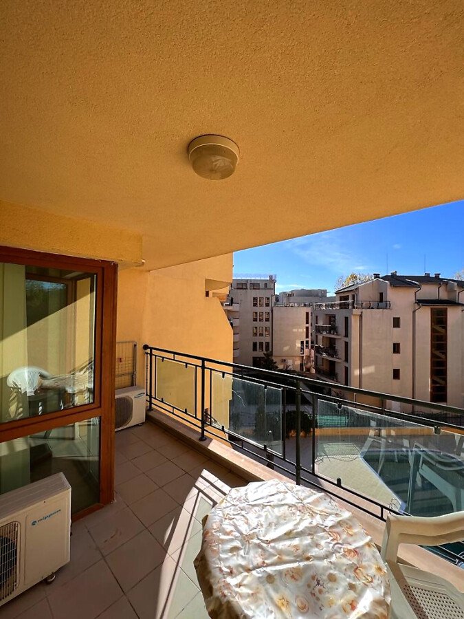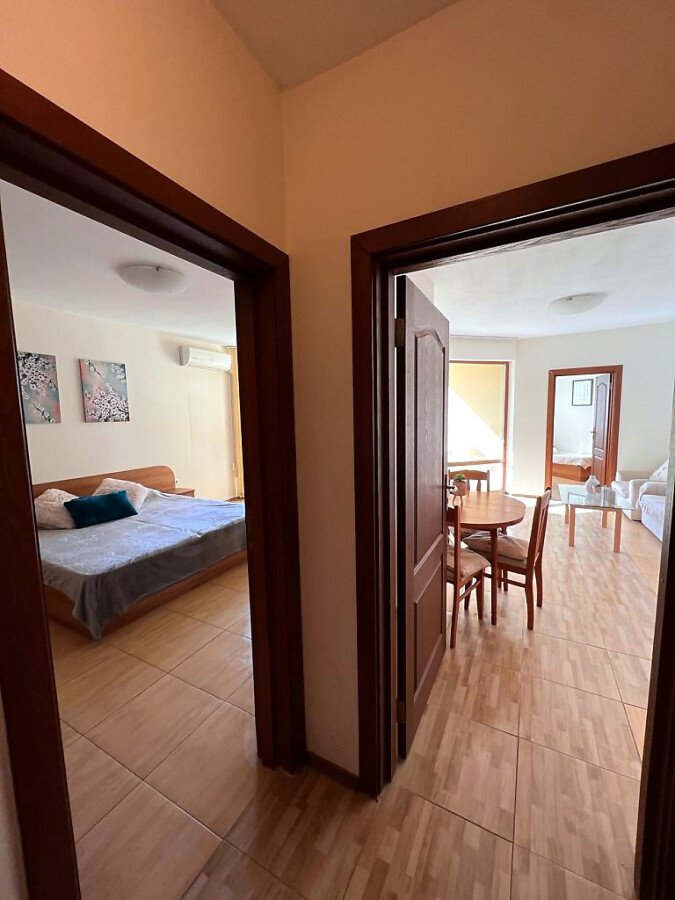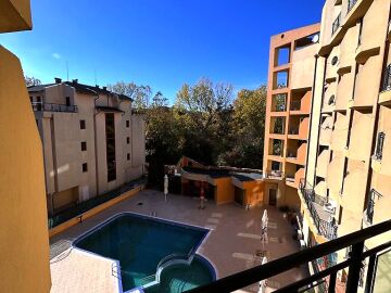 Предлагаме за продажба тристаен апартамент с гледка към басейна в комплекс „Амадеус 1“, разположен между известните курорти Слънчев бряг и Свети Влас, само на 5 минути пешеходно разстояние от плажната ивица и морето. Районът е с добре развита инфраструктура и удобни комуникационни връзки, като в непосредствена близост може да откриете голям супермаркет, разнообразие от летни атракции, магазини, медицински център, аптека, автобусни спирки.