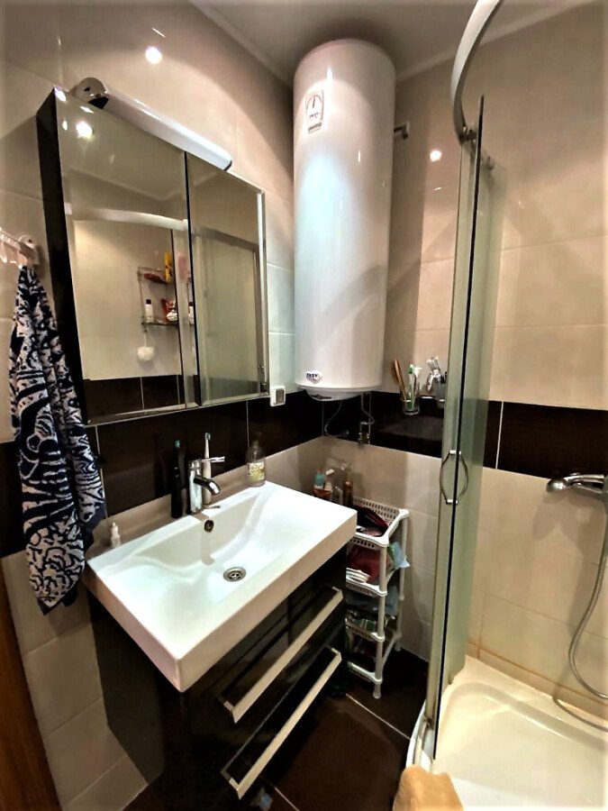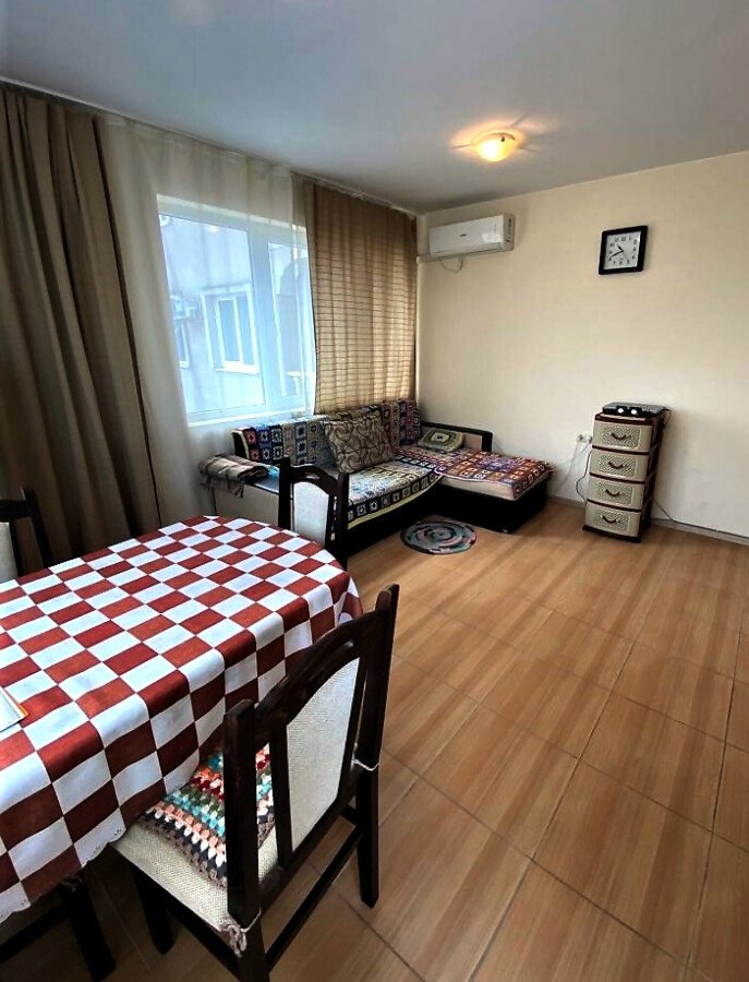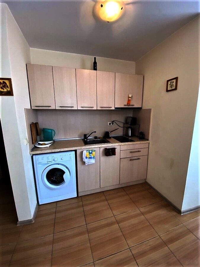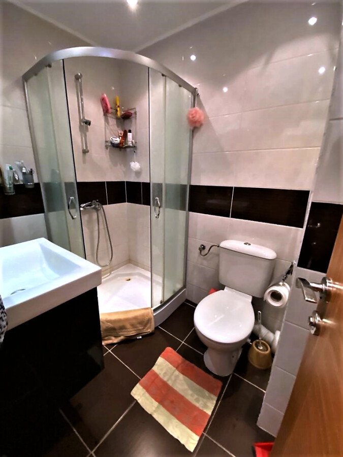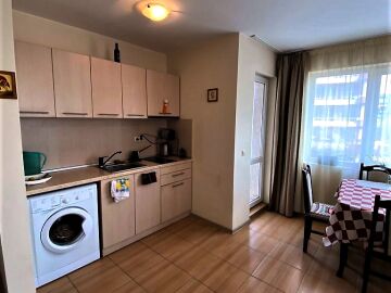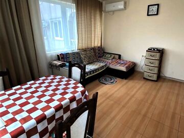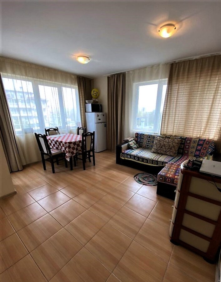 Апартаментът е разположен на трети етаж и има следното разпределение – входно антре, всекидневна с кухненски бокс и обособена зона за хранене, спалня, баня с тоалетна и душ кабина, тераса с изглед към града. Продава се готов за живеене, в много добро състояние, обзаведен и напълно оборудван.