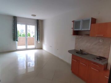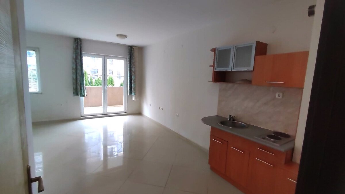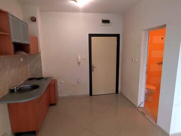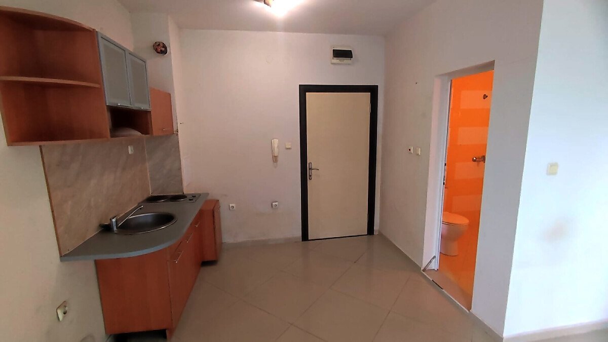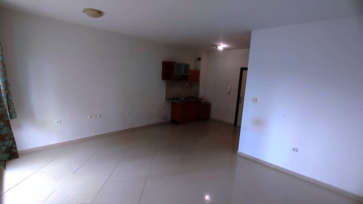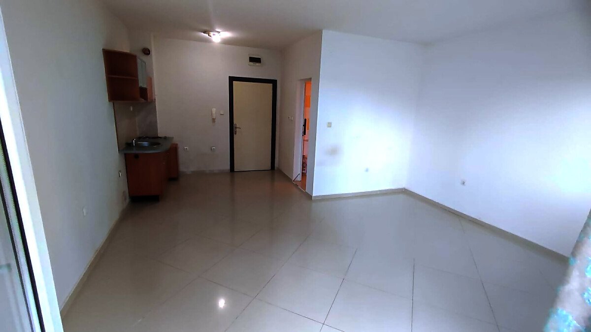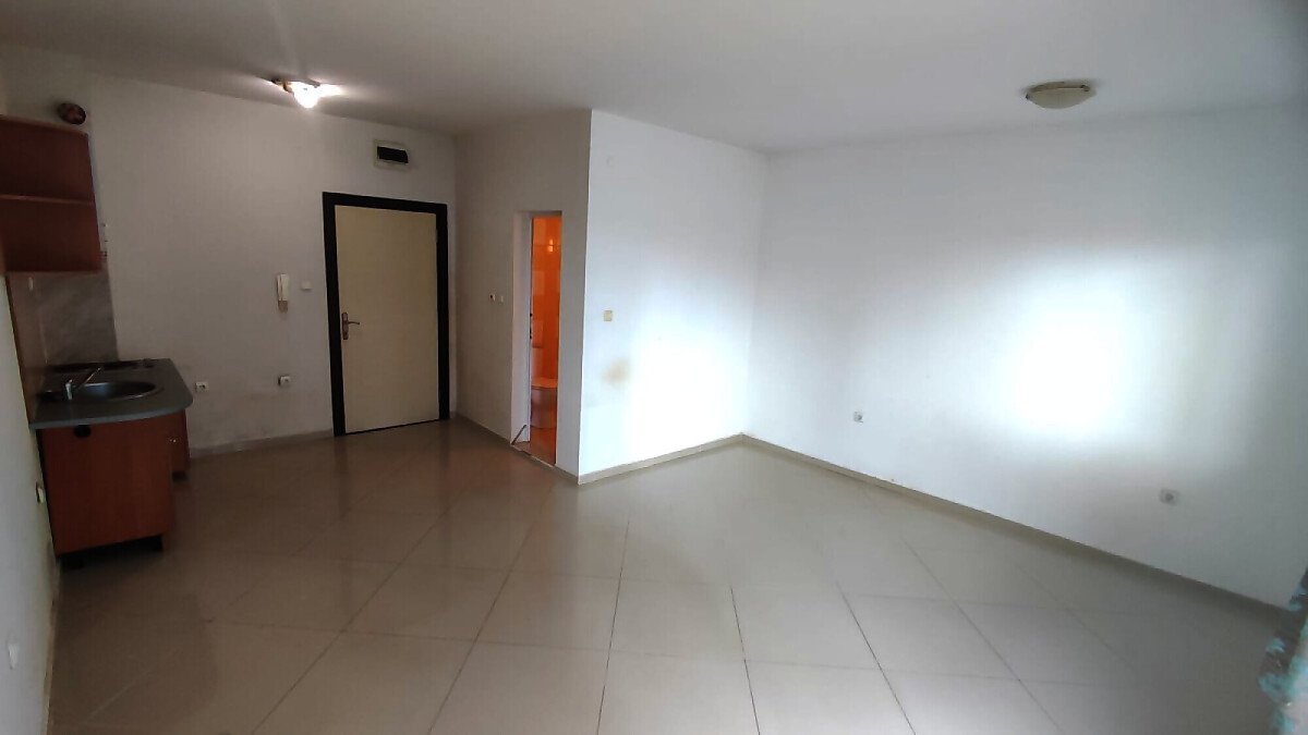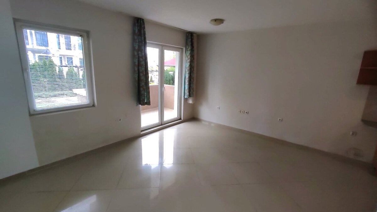 Студиото се продава без обзавеждане и оборудване и има следното разпределение – голяма всекидневна с малък кухненски бокс, баня с тоалетна, тераса с красива гледка към двора, басейна и вътрешната част. Банята е напълно завършена и функционална.