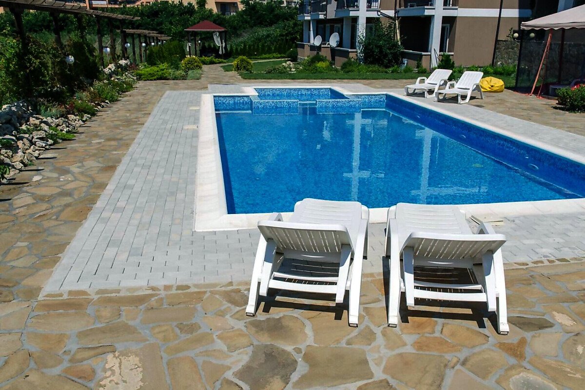 На разположение на собствениците и гостите има открит плувен басейн с детска секция, озеленена територия, зони за отдих и слънчеви бани, бар, тенис корт, целогодишна поддръжка, паркинг, денонощна охрана и видеонаблюдение.