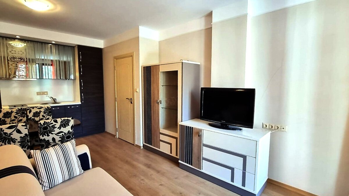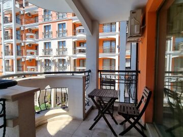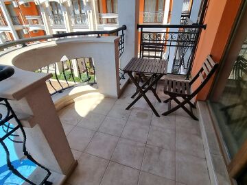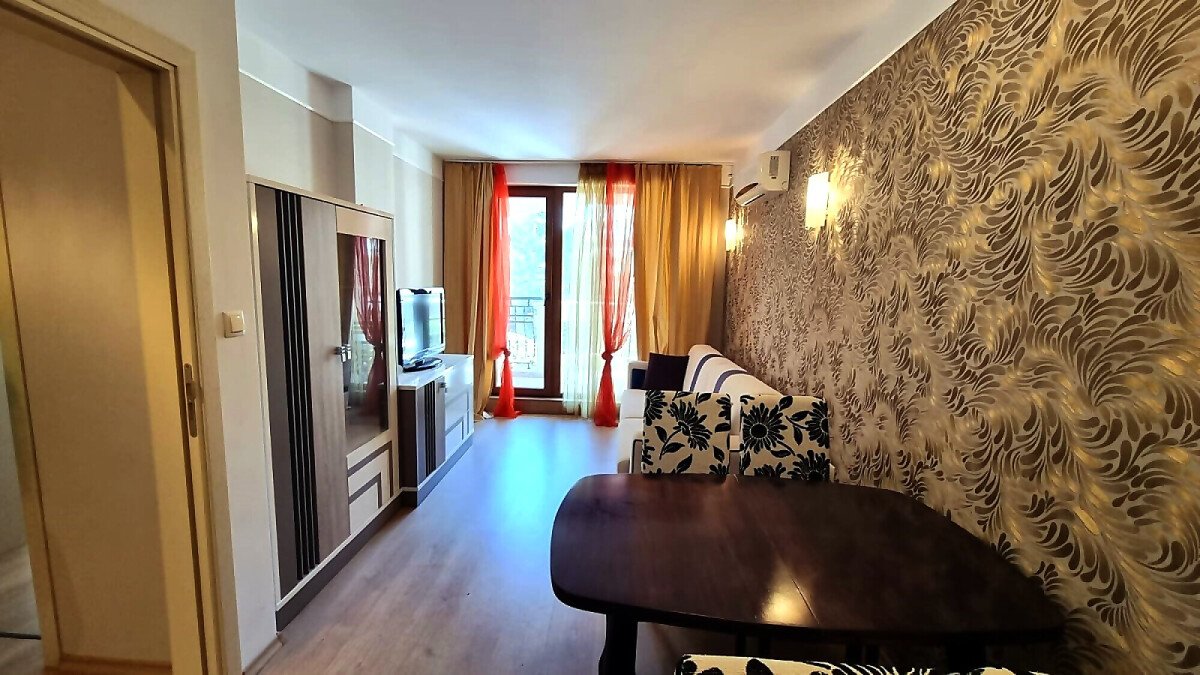 Апартаментът е много функционален, уютен, със стилно и модерно обзавеждане, напълно оборудван. Имотът е със следното разпределение – входно антре, всекидневна с кът за хранене и обособен малък кухненски бокс, спалня, баня с тоалетна и душ кабина, тераса с невероятна гледка към басейна и вътрешната територия.