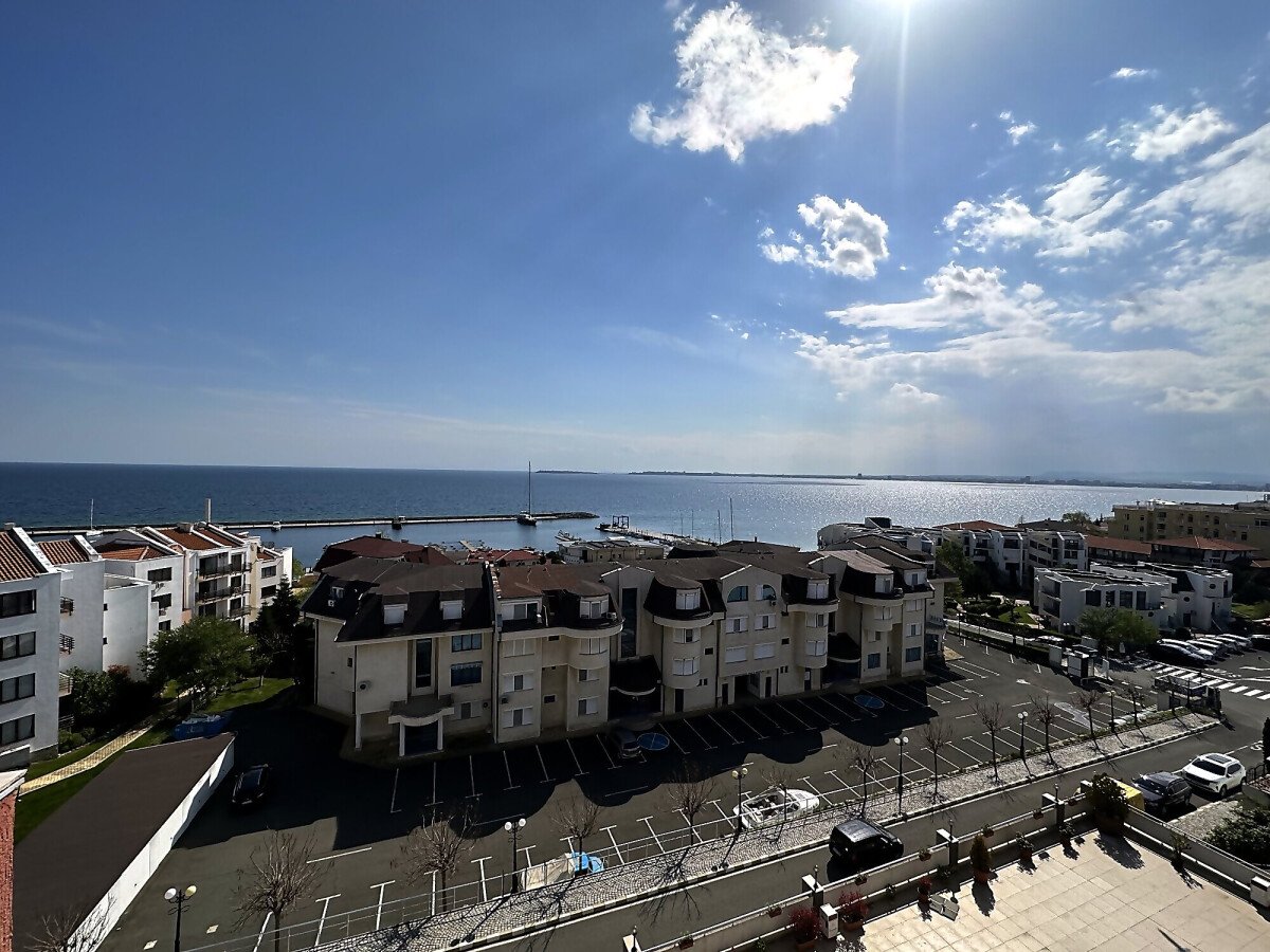 Предлагаме за продажба отличен тристаен апартамент с уникална панорамна гледка към морето в комплекс „Лазур 5“, разположен в един от най-атрактивните и елитни курорти на българското крайбрежие – Свети Влас, само на 150 метра пешеходно разстояние от плажната ивица и морето. На разположение на собствениците и гостите има открит плувен басейн с детска секция, прекрасно озеленена територия, ресторант, кафене, магазини, денонощна охрана и целогодишна поддръжка, подземен паркинг.