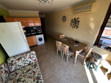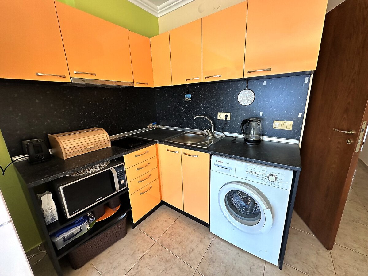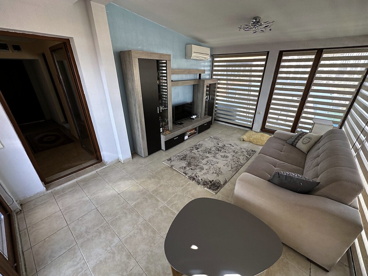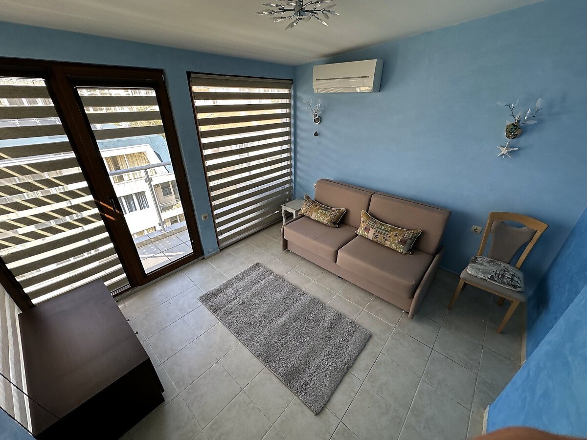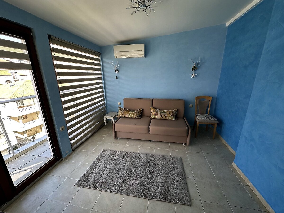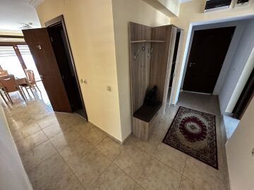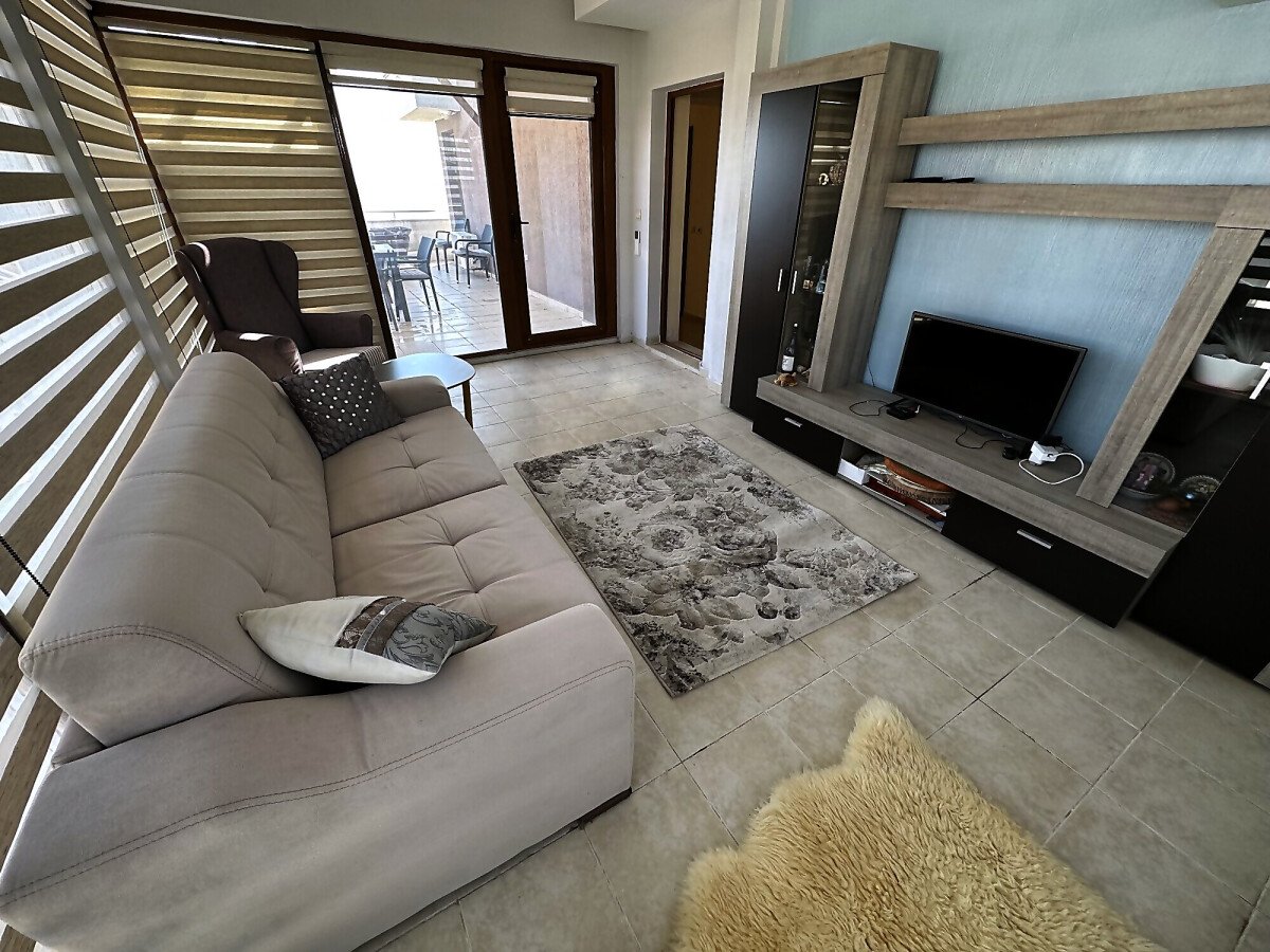 Апартаментът е просторен и много функционален, със следното разпределение – входно антре, всекидневна с малък кухненски бокс и трапезария, две спални, баня с тоалетна и душ кабина, голяма тераса с невероятна панорамна гледка към морето. Продава се напълно обзаведен и оборудван, и в трите стаи има климатик, готов за живеене!