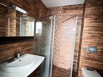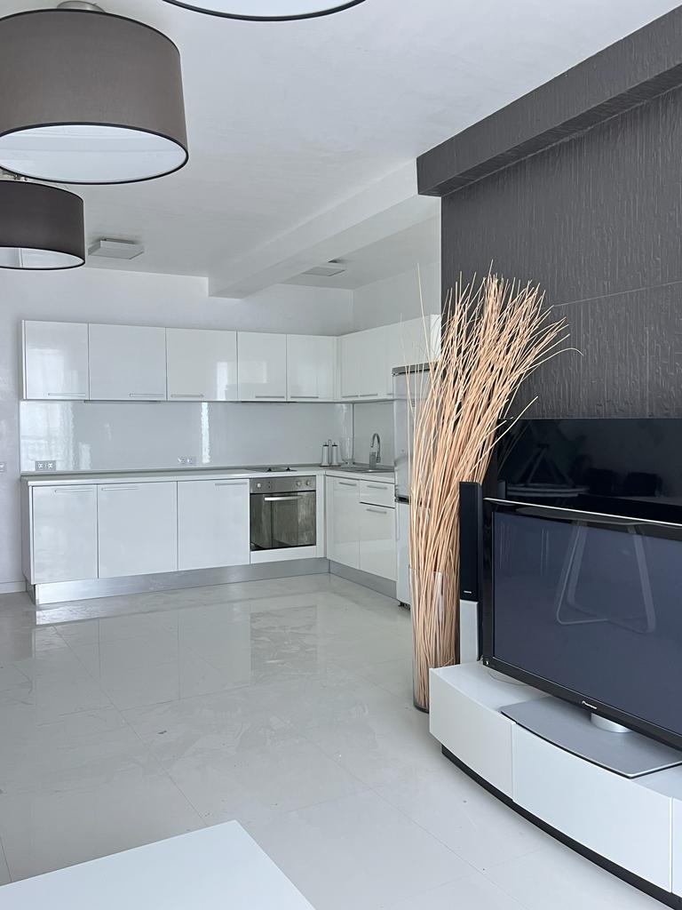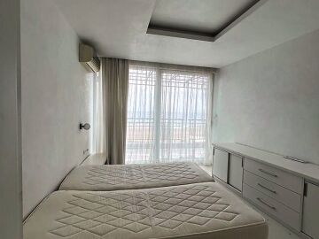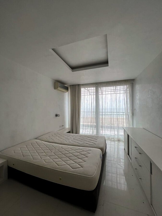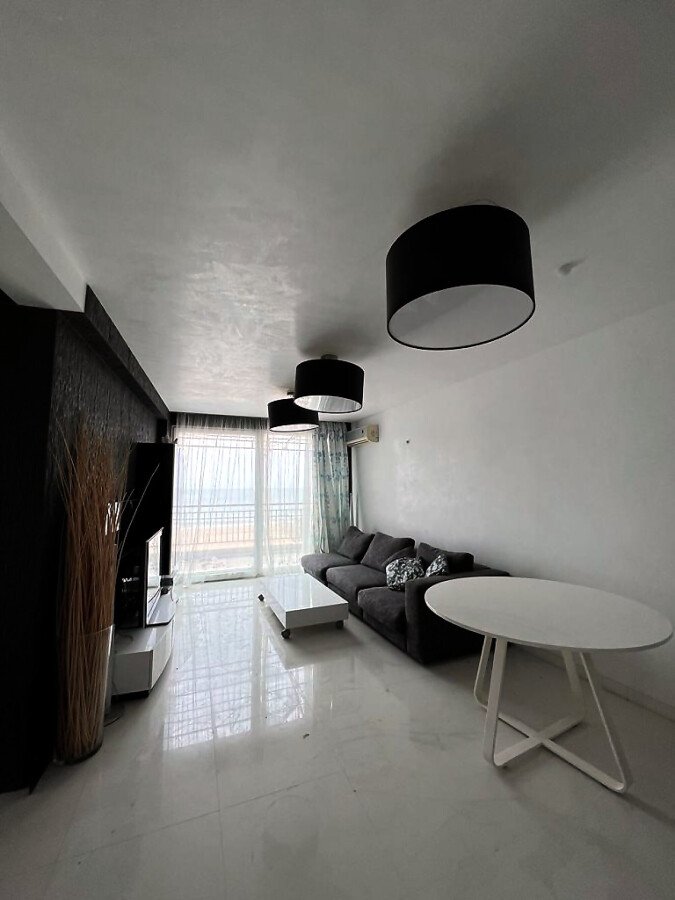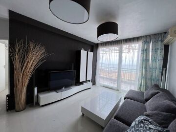 Апартаментът е стилно обзаведен, много добре оборудван, в отлично състояние, готов за живеене. Състои се от просторна всекидневна с кухненски бокс, баня с тоалетна и душ кабина, спалня, две тераси, разкриващи невероятни морски гледки.