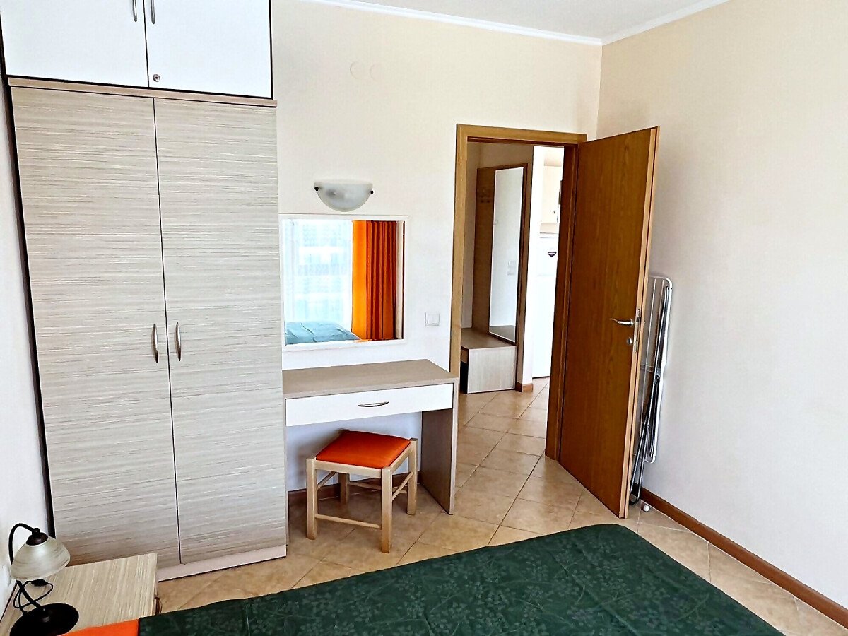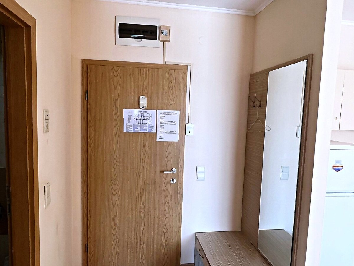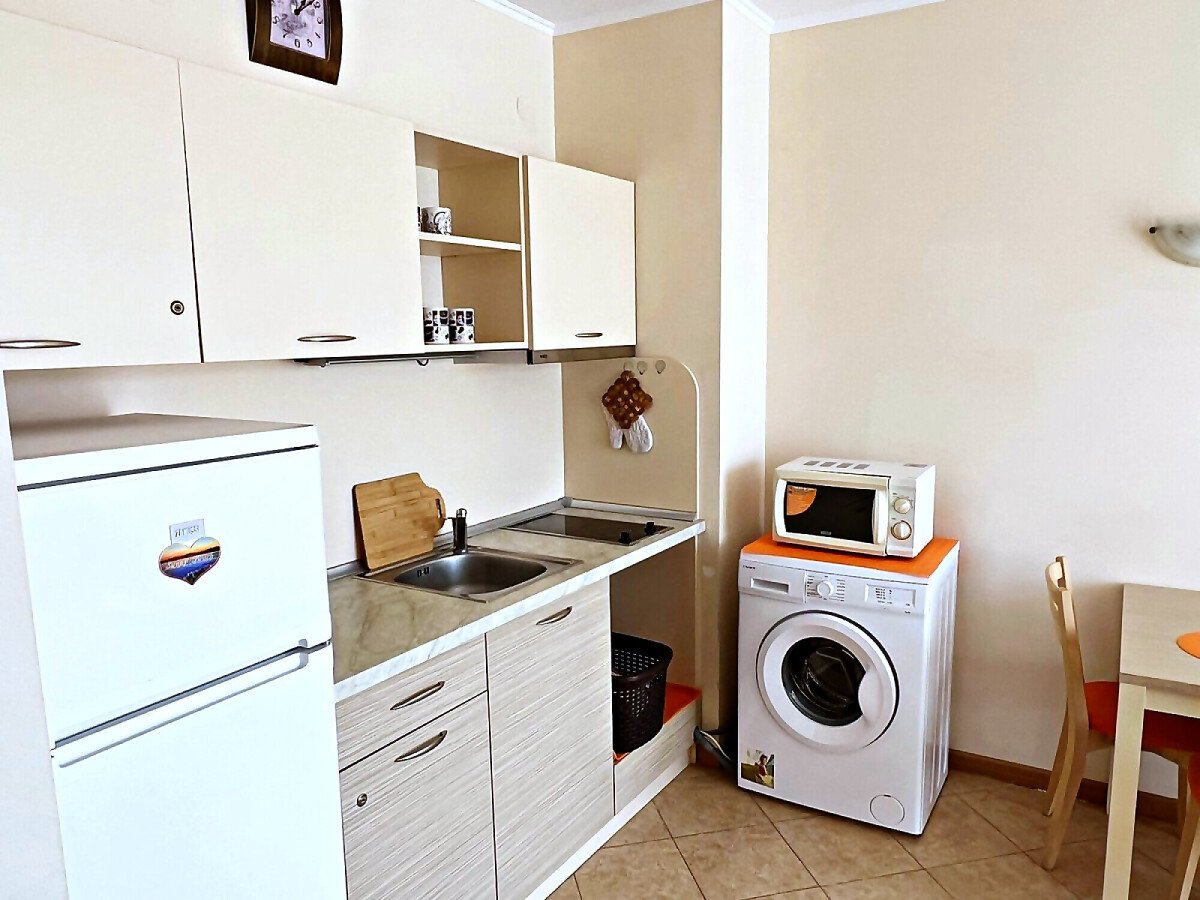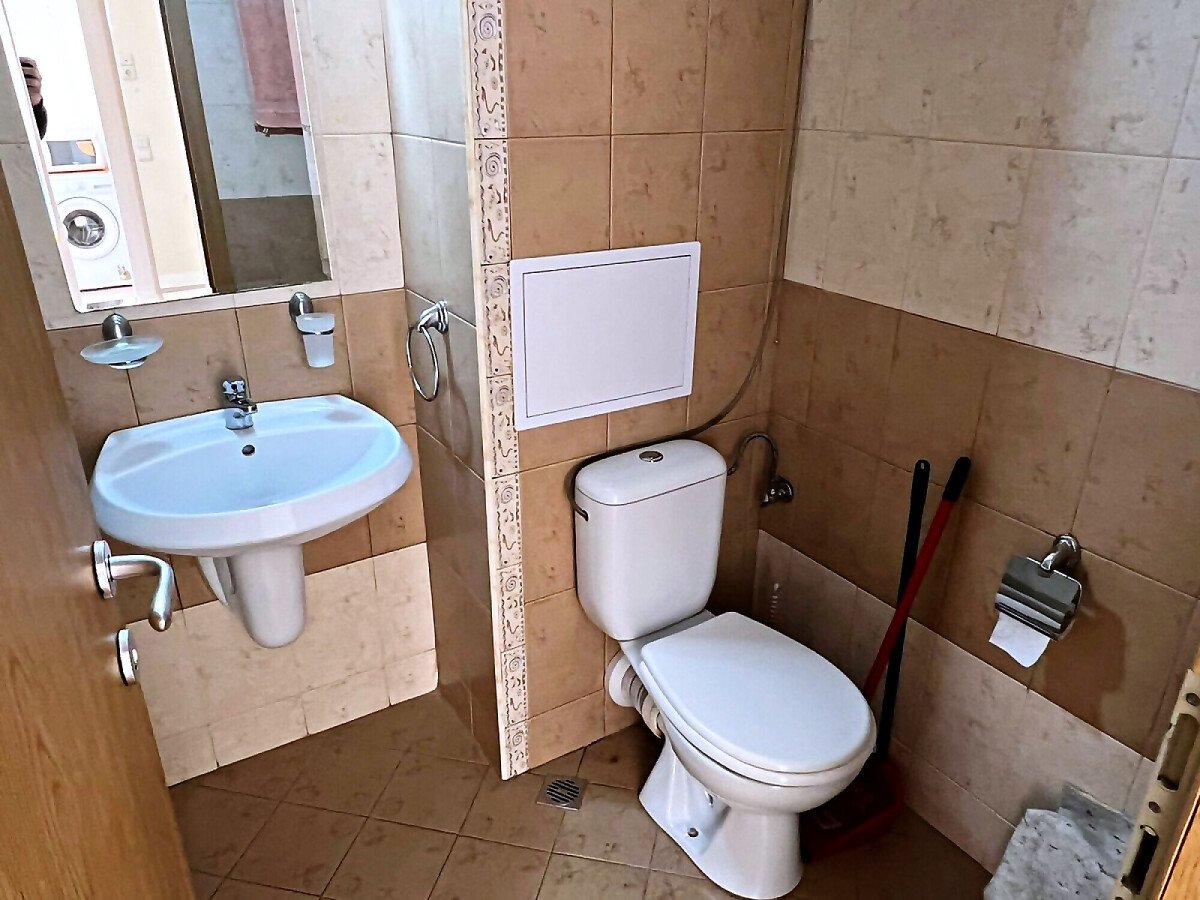 Апартаментът е разположен на пети, предпоследен етаж и има следното разпределение – входно антре, всекидневна с кухненски бокс и зона за хранене, спалня, баня с тоалетна и вана, чудесна тераса с красива гледка към басейна. Продава се в отлично състояние, напълно оборудван и мебелиран, готов за живеене.