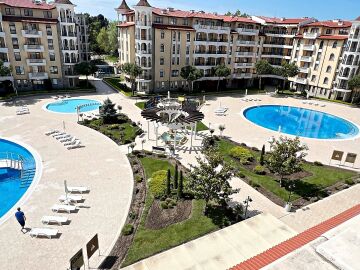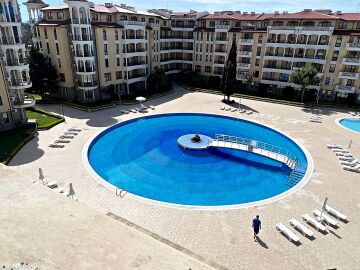 Предлагаме за продажба чудесен двустаен апартамент с гледка към басейна в комплекс „Роял Сън“, разположен в един от най-популярните и атрактивни морски курорти – Слънчев бряг, само на 300 метра пешеходно разстояние от морето.