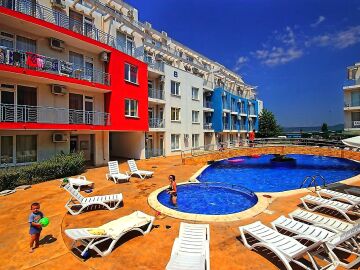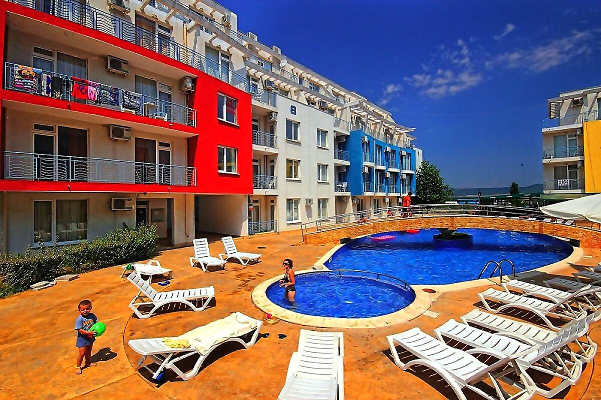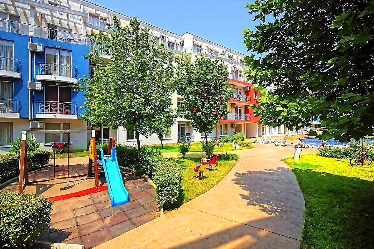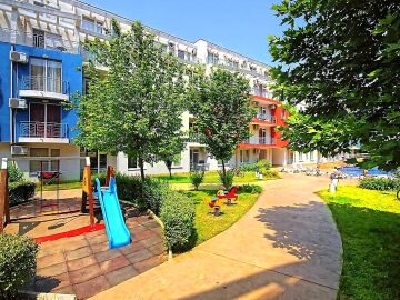 Комплексът е отлично поддържан и разполага с красива градина, голям външен басейн за възрастни с детска секция, контрол на достъпа, паркинг.
