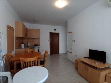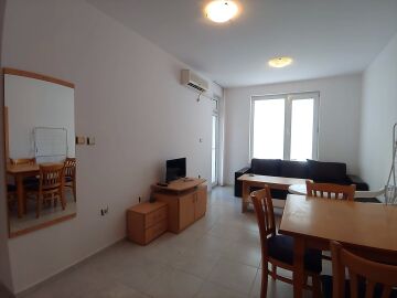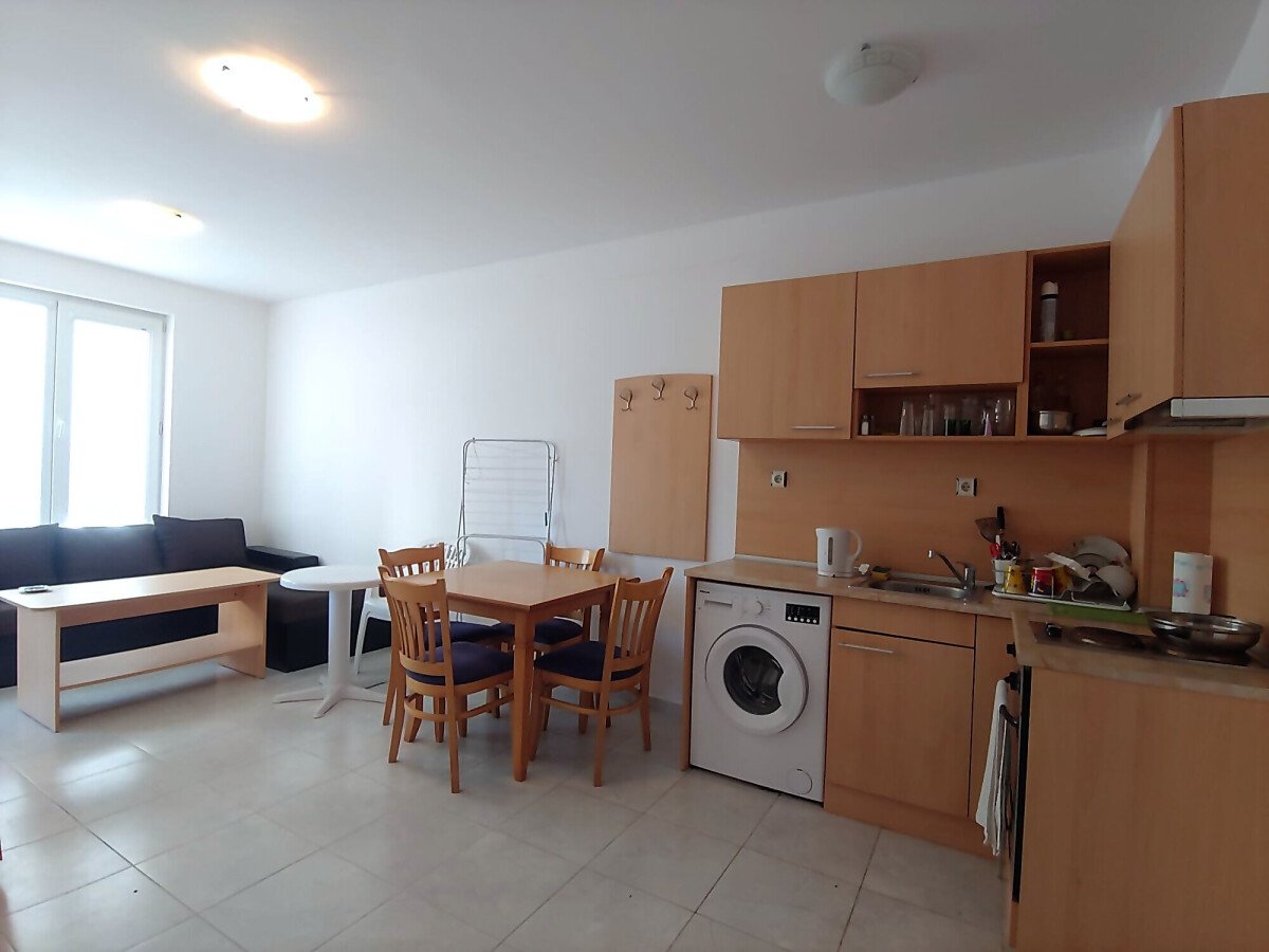 Апартаментът се продава в много добро състояние, готов за живеене – обзаведен и напълно оборудван с техника. Жилището е функционално и има следното разпределение – входно антре, всекидневна с кухненски бокс и зона за хранене, спалня, баня с тоалетна, малка тераса с изглед към озеленения двор.