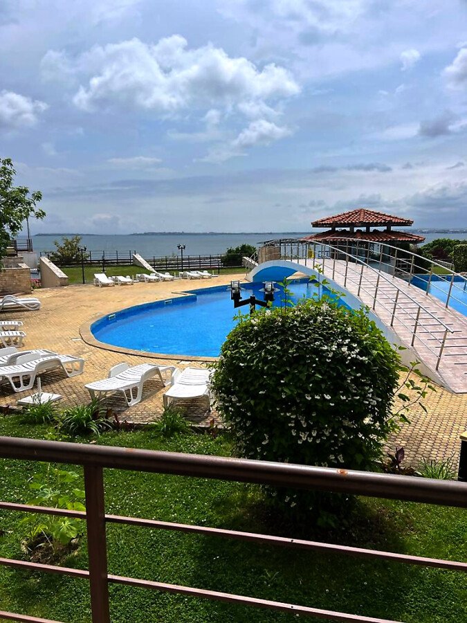 Предлагаме за продажба уникален двустаен апартамент с панорамна гледка към морето в комплекс „Диамант“, разположен на първа линия в елитния морски курорт Свети Влас, само на метри пешеходно разстояние от морето и плажната ивица. Комплексът е разположен на 24 000 кв.м. и разполага с богато озеленени територии.