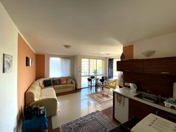 Апартаментът е много просторен и функционален, със следното разпределение – голяма всекидневна с обособен кът за хранене и кухненски бокс, спалня, баня с тоалетна, тераса. Продава се в много добро състояние, оборудван с необходимата домакинска електротехника, напълно мебелиран, готов за живеене.