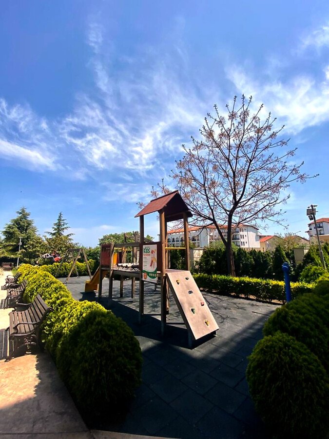 На разположение на собствениците и гостите има голям плувен басейн за възрастни с детска секция, подземен и външен паркинг, детска площадка, денонощна охрана и видеонаблюдение, контрол на достъпа.
