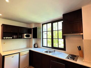 Комплексът се намира извън града, което е отлична възможност да се насладите на спокойна почивка, далеч от шума на курорта. На 5 минути разстояние с автомобил или 10 минути с велосипед може да откриете разнообразие от магазини, ресторанти, летни атракции, клубове и заведения.