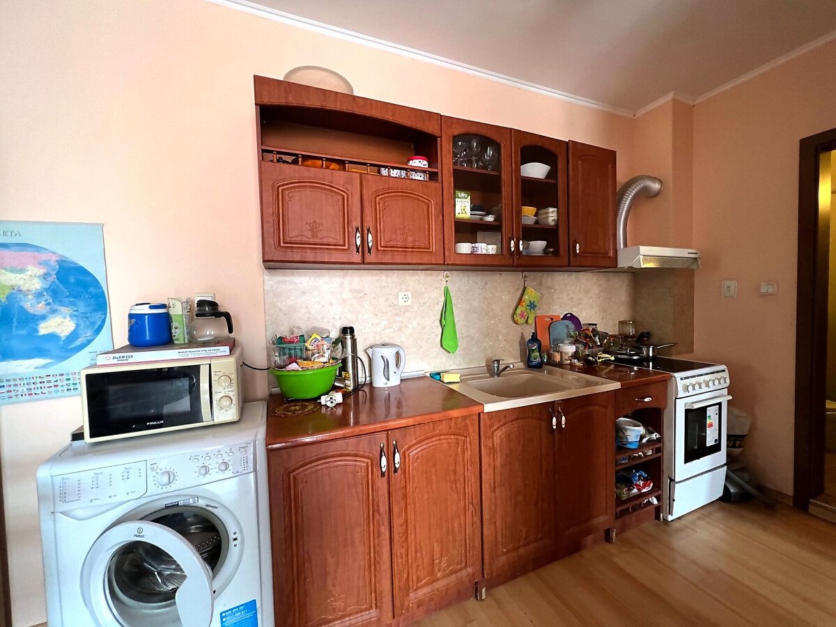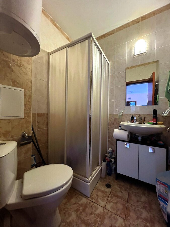 Апартаментът е разположен на последен, четвърти етаж и има следното разпределение – входно антре, просторна всекидневна с кухненски бокс и зона за хранене, голяма спалня, баня с тоалетна и душ кабина, тераса с гледка към вътрешната част на комплекса. Продава се в много добро състояние, обзаведен и напълно оборудван, готов за живеене.
