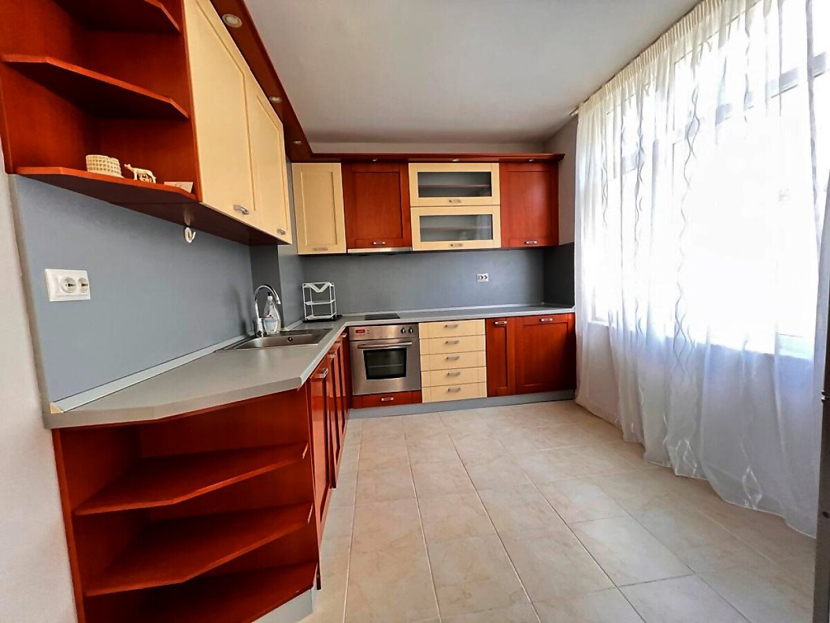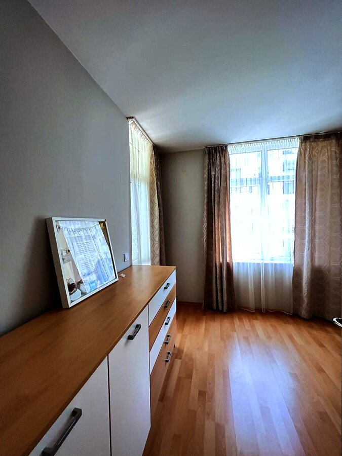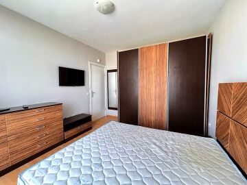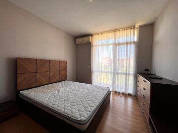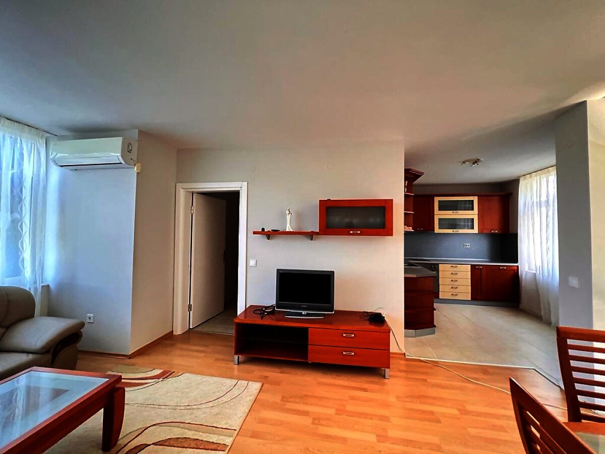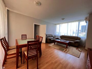 Апартаментът е много просторен и функционален, със следното разпределение – входно антре, всекидневна с кът за хранене и кухня, две спални, тоалетна, баня с тоалетна и душ кабина, две тераси. Продава се в отлично състояние, добре мебелиран, оборудван с качествена техника, готов за живеене.