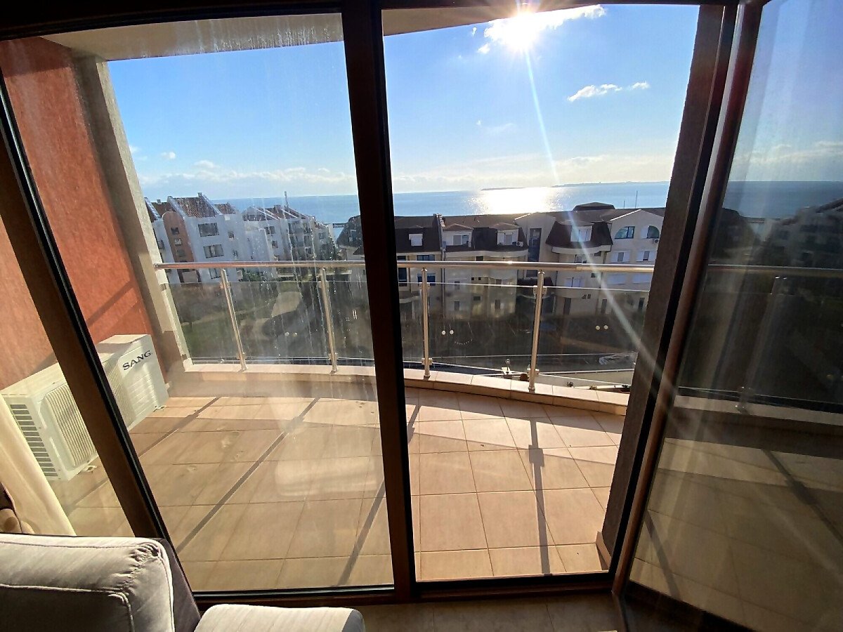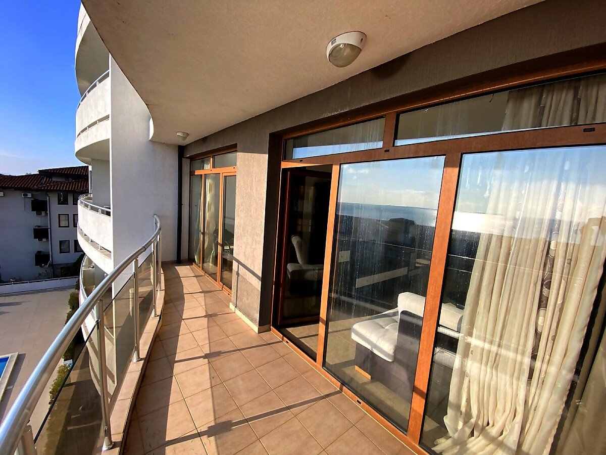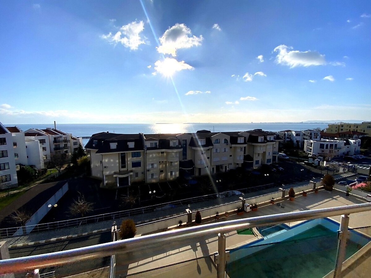 Предлагаме за продажба уникален двустаен апартамент с панорамна гледка към морето в комплекс „Лазур 5“, разположен в един от най-елитните морски курорти – Свети Влас, само на 150 метра от плажа и морето.