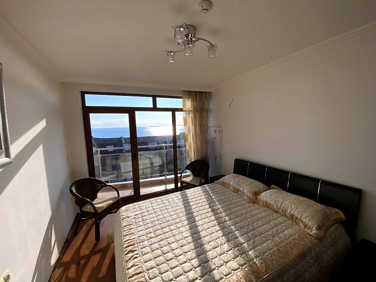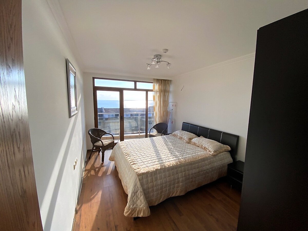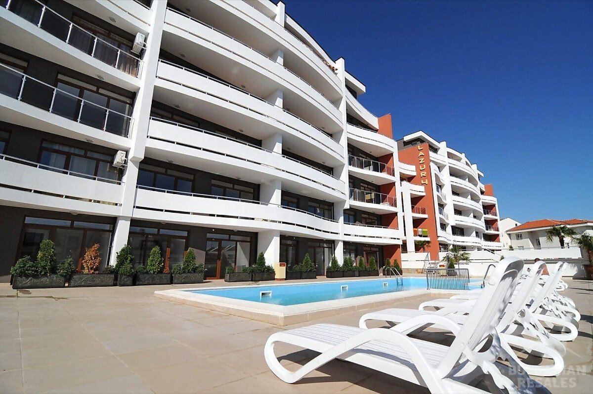 Предлагаме за продажба уникален двустаен апартамент с панорамна гледка към морето в комплекс „Лазур 5“, разположен в един от най-елитните морски курорти – Свети Влас, само на 150 метра от плажа и морето.