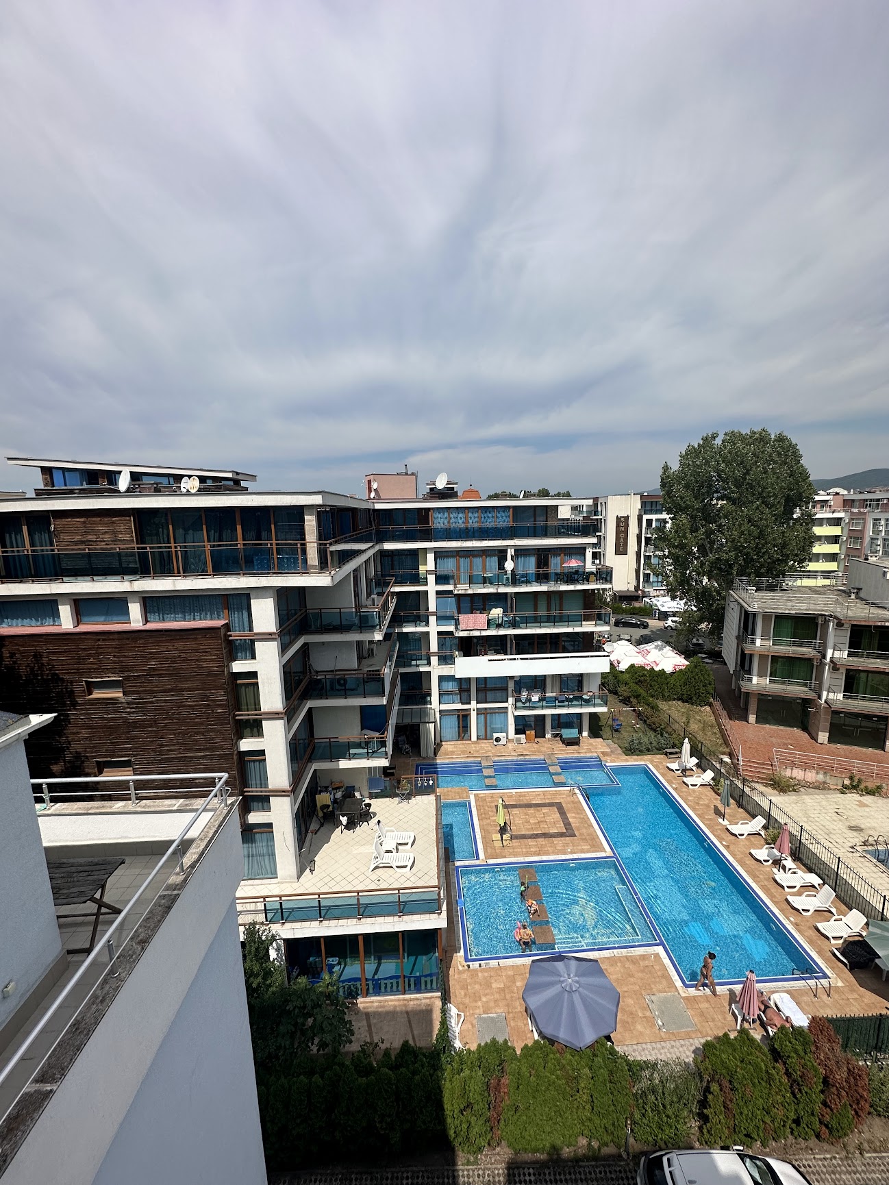 На разположение на собствениците и гостите има открит плувен басейн с детска секция, зони за отдих и слънчеви бани, детска площадка, паркинг, бар, целогодишна поддръжка, охрана.