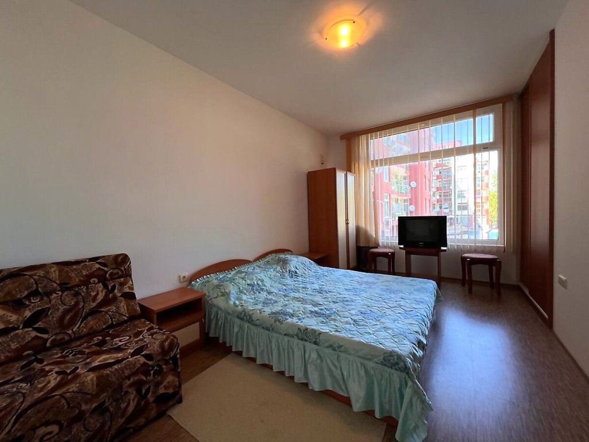 Предлагаме за продажба уютен двустаен апартамент с гледка към басейна в комплекс „Глобал Вил“, разположен в известния летен курорт Слънчев бряг, само на 300 метра пешеходно разстояние от плажната ивица и морето.