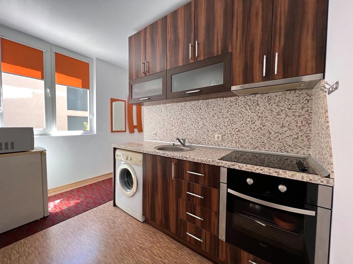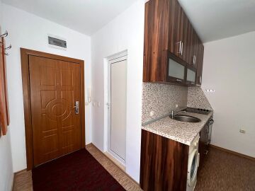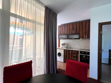 Апартаментът е функционален и има следното разпределение – входно антре, всекидневна с кът за хранене и кухненски бокс, спалня, баня с тоалетна, голяма тераса.