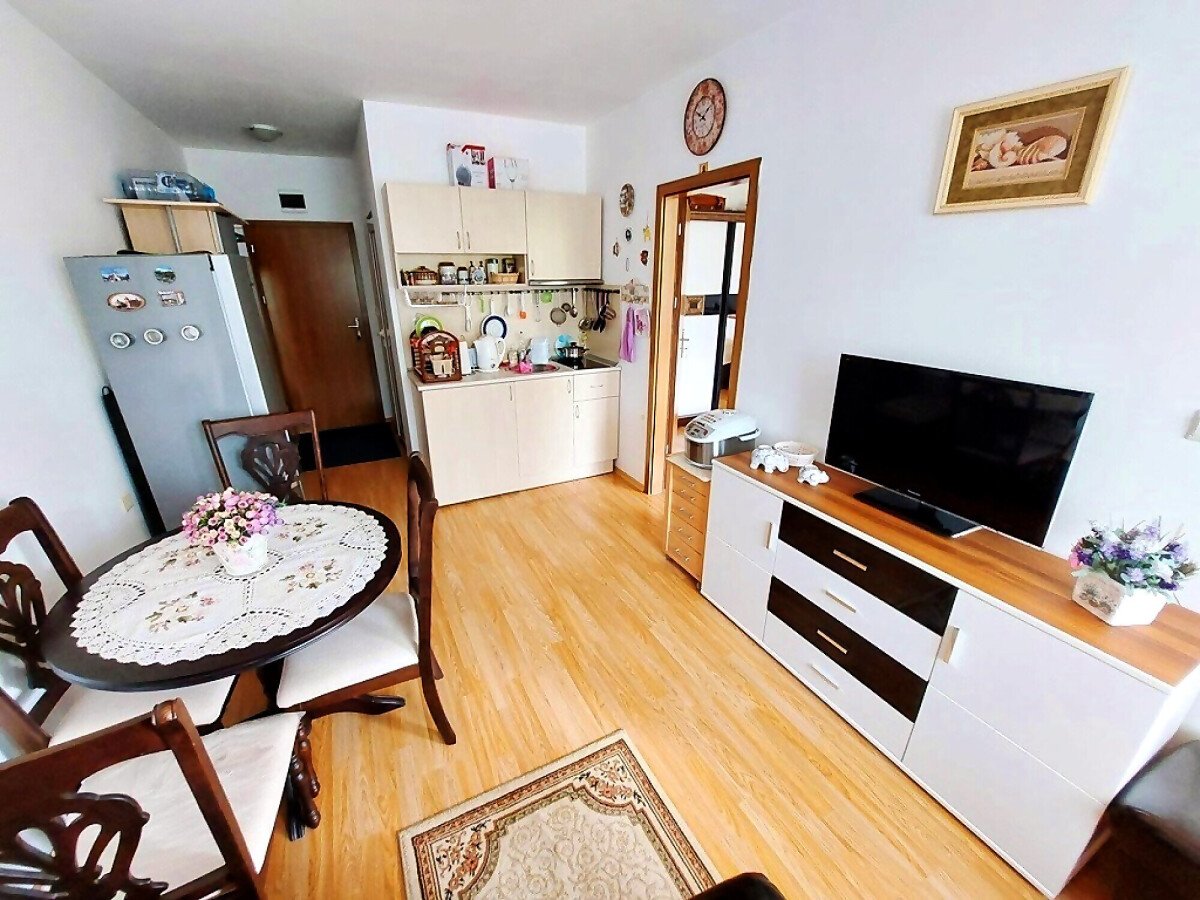 Предлагаме за продажба изгоден двустаен апартамент в комплекс „Гербер Резиденс 2“, разположен на тихо и спокойно място в атрактивния морски курорт Слънчев бряг, на 600 метра разстояние от морето и плажната ивица.
