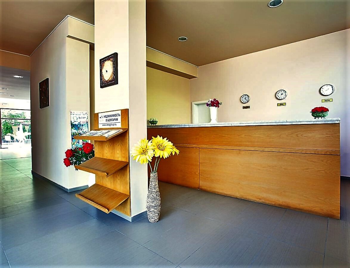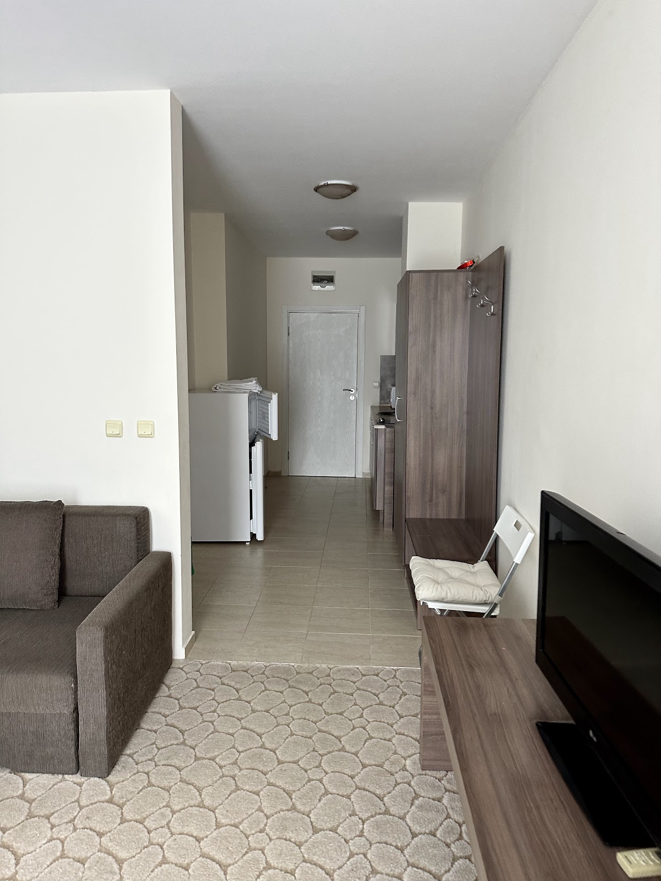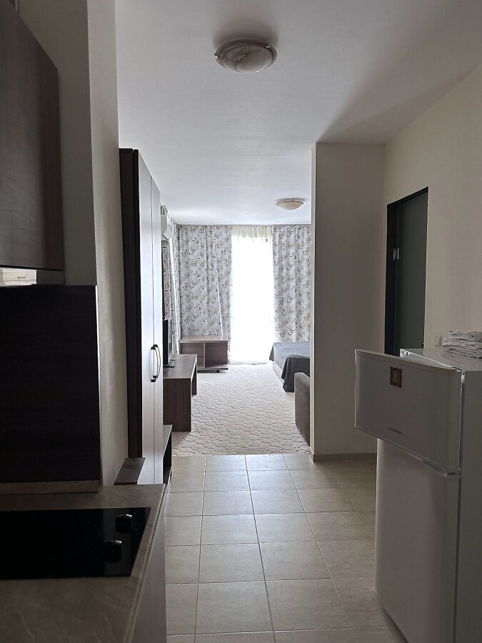 Студиото е разположено на пети етаж в шестетажна сграда, която има асансьор. Жилището е светло и просторно и има следното разпределение – входно антре, кухненски бокс, всекидневна с обособена спалня, баня с тоалетна, тераса с гледка към басейна и към вътрешната територия на комплекса.