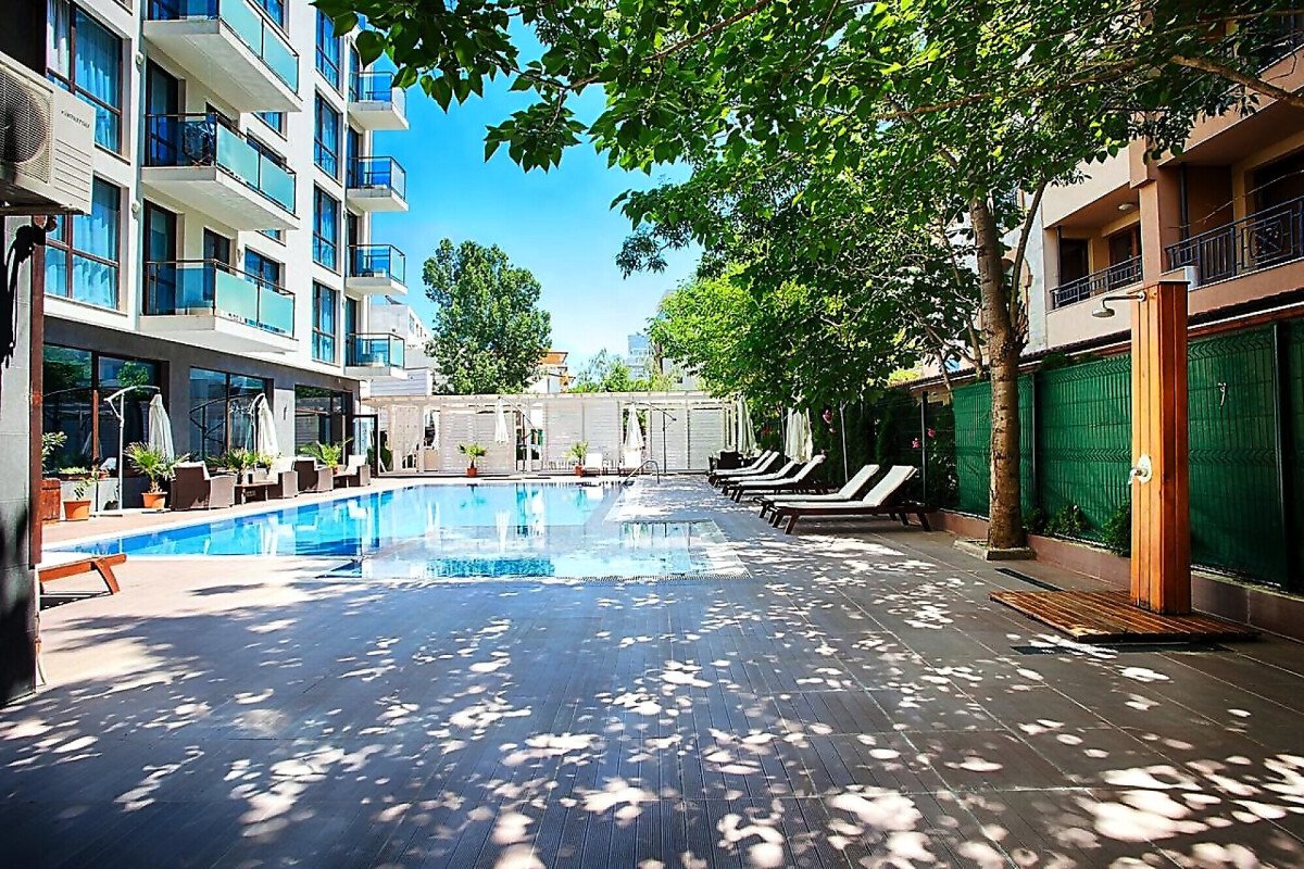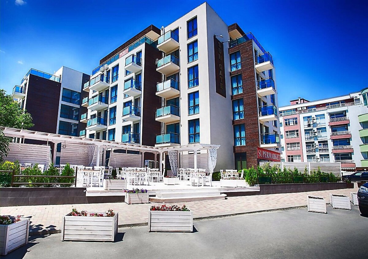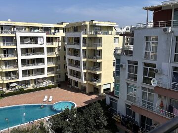 Предлагаме за продажба просторно студио с гледка към басейна в комплекс „Сън Гейт“, разположен в атрактивния морски курорт Слънчев бряг, само на 500 метра разстояние от морето и плажната ивица. На метри от комплекса инфраструктурата е много добре развита, като може да откриете и да се насладите на разнообразие от летни атракции, ресторанти и кафенета, барове, клубове, магазини.