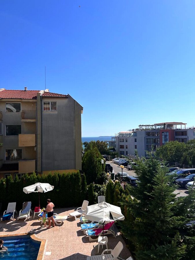 Предлагаме за продажба чудесен двустаен апартамент с гледка към басейна и частична гледка към морето в комплекс „Sunset”, разположен на първа брегова линия в известния морски курорт Свети Влас, само на 50 метра от плажа.