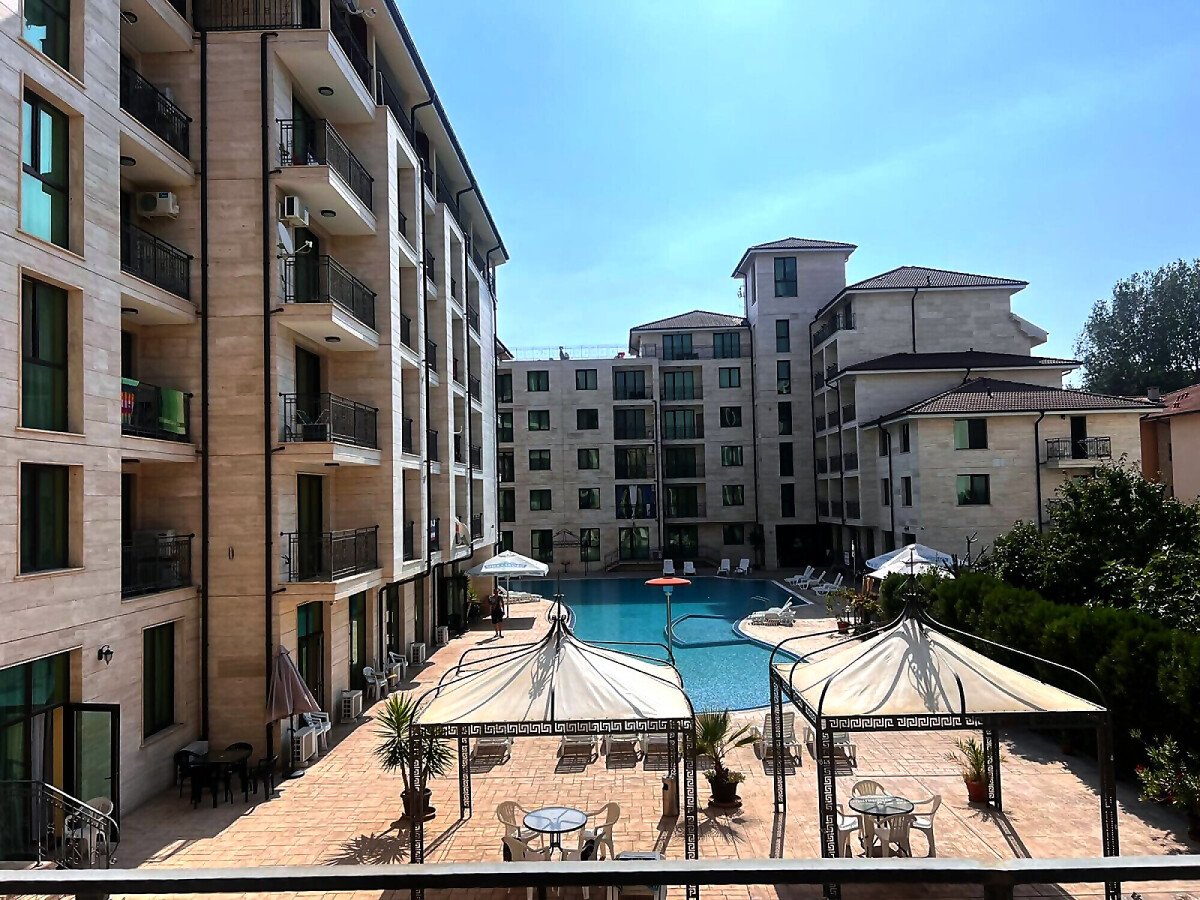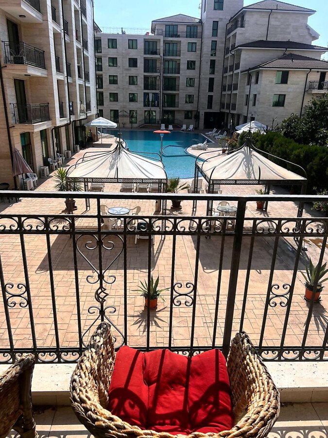 Предлагаме за продажба прекрасен тристаен апартамент с гледка към басейна в луксозния комплекс „Амадеус Лукс“, разположен на тихо място близо до централната част на атрактивния морски курорт Слънчев бряг, на 450 метра пешеходно разстояние от плажа и морето. В близост може да откриете цялата необходима инфраструктура – разнообразие от магазини, ресторанти, кафенета, удобни автобусни спирки, летни атракции.