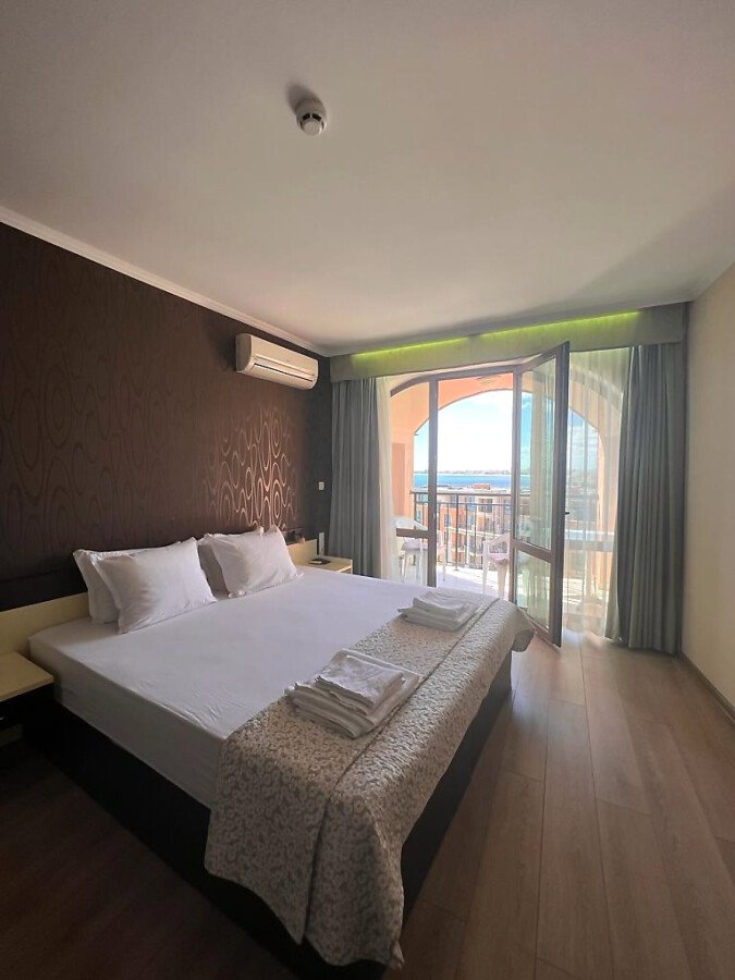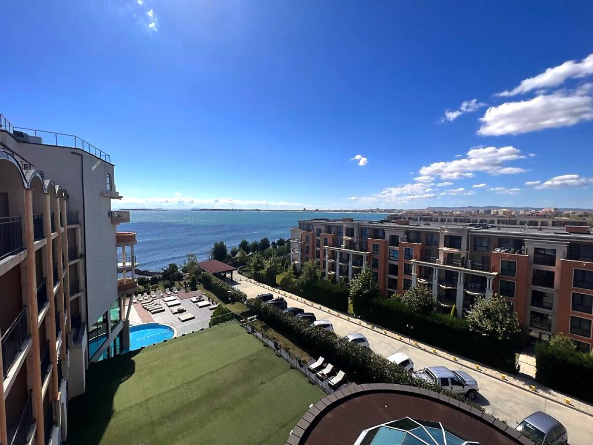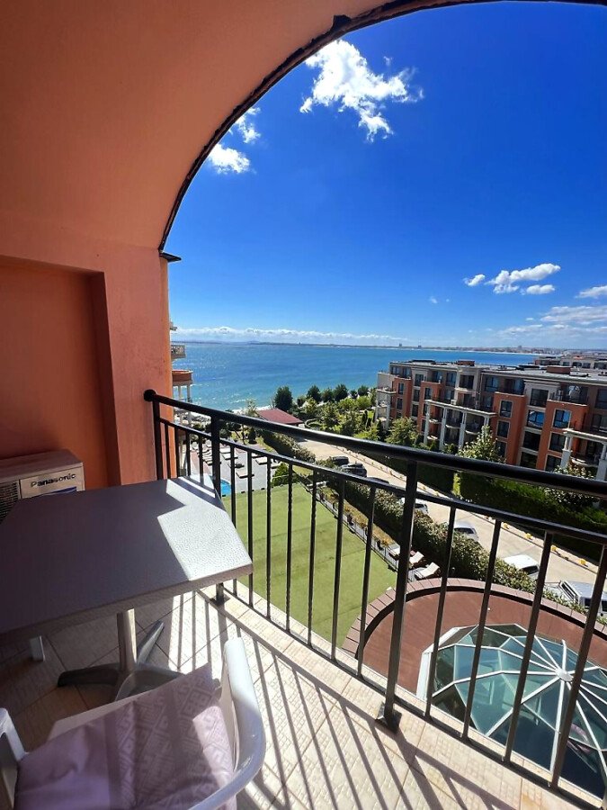 Предлагаме за продажба просторно студио с гледка към басейна и панорамна гледка към морето в комплекс „Гранд Хотел Свети Влас“, разположен на първа брегова линия в атрактивния морски курорт Свети Влас, само на метри пешеходно разстояние от плажа.