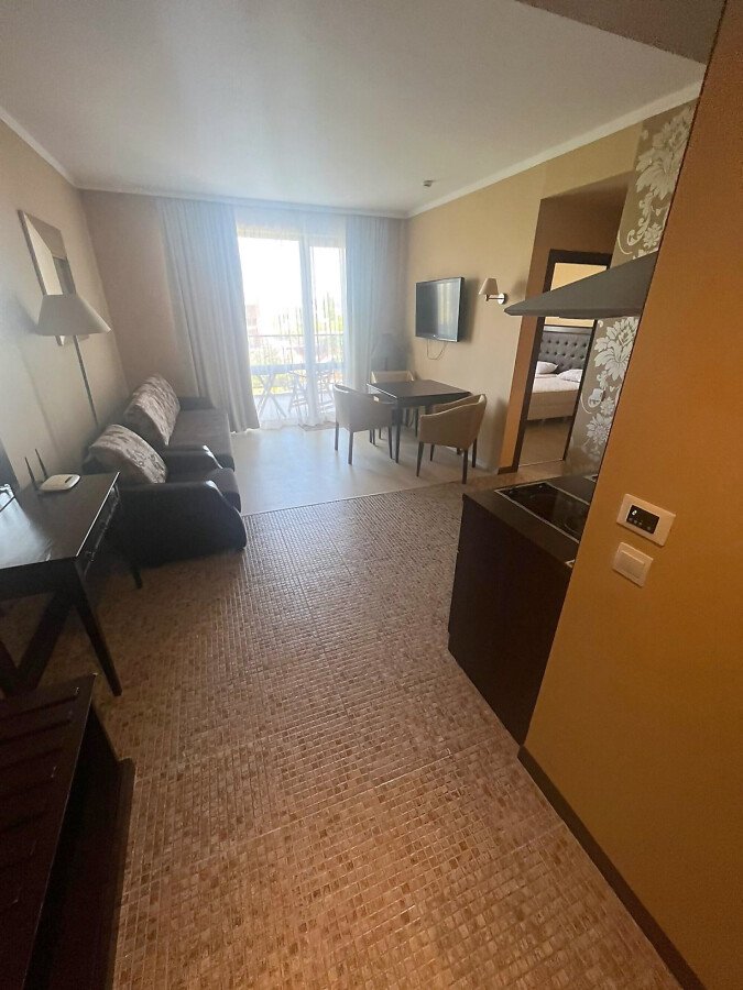 Предлагаме за продажба двустаен апартамент в луксозния комплекс „Роял Бийч Барсело“, разположен в един от най-атрактивните и модерни курорти на българското крайбрежие – Слънчев бряг, само на 50 метра пешеходно разстояние от плажната ивица. В непосредствена близост може да откриете и да се насладите на разнообразие от кафенета, ресторанти, магазини, клубове и барове, летни атракции.