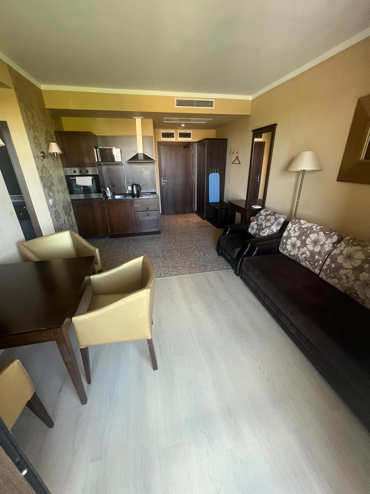 Апартаментът е много функционален и стилен, със следното разпределение – входно антре, всекидневна с кухненски бокс и обособена зона за хранене, спалня, баня с тоалетна и вана, тераса.