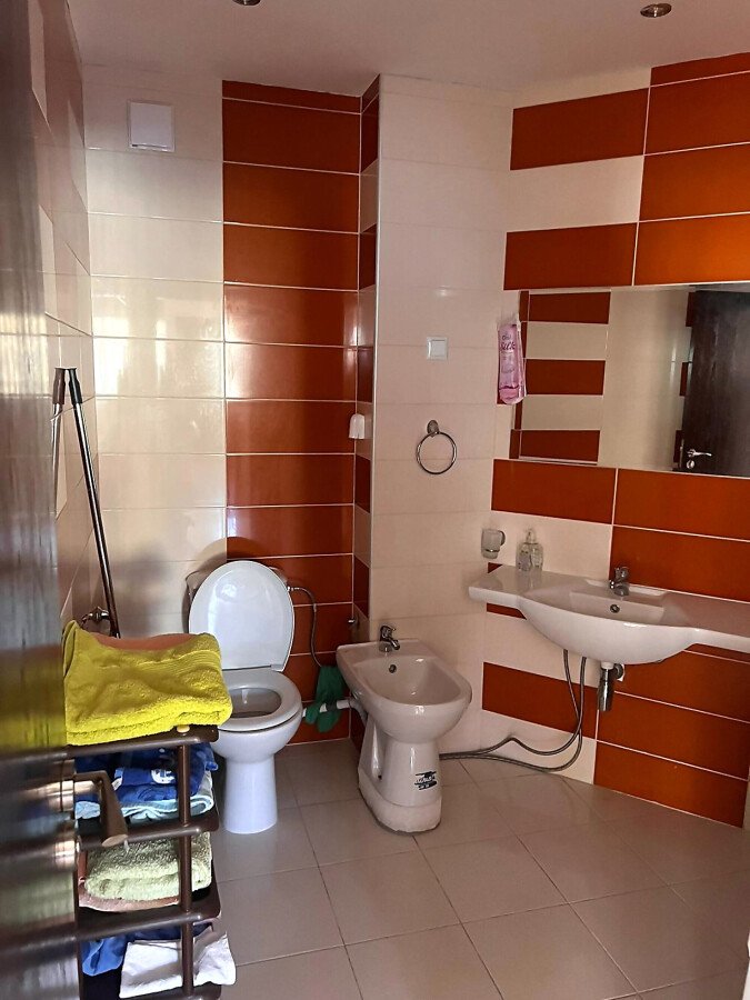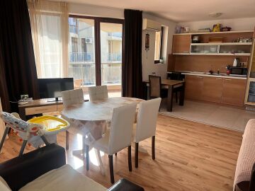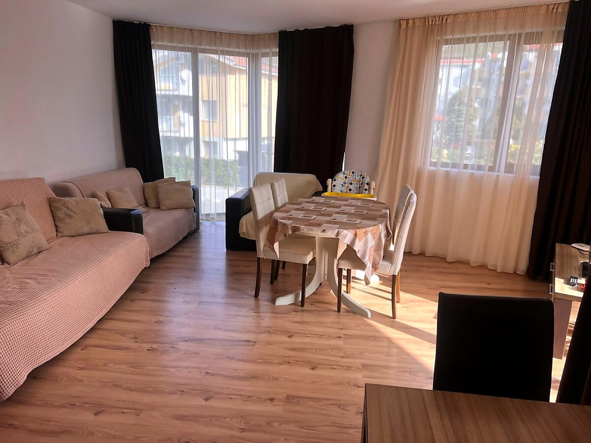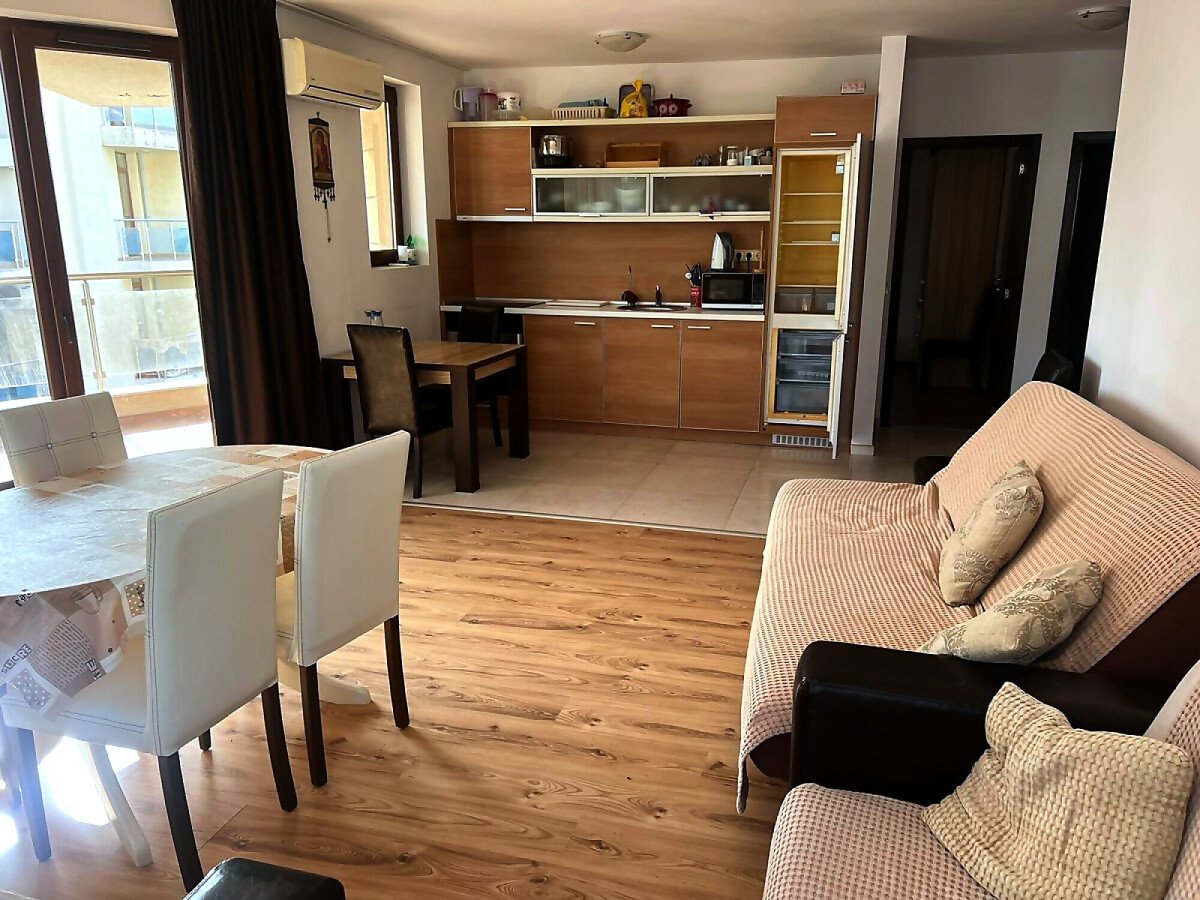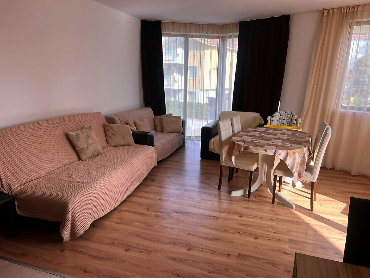 Апартаментът е много функционален, със следното разпределение – входно антре, всекидневна с кухненски бокс и обособена зона за хранене, две спални, тоалетна, баня с тоалетна и душ кабина, тераса с частична гледка към планината. Имотът се продава в отлично състояние, много добре обзаведен и оборудван с техника, готов за живеене.
