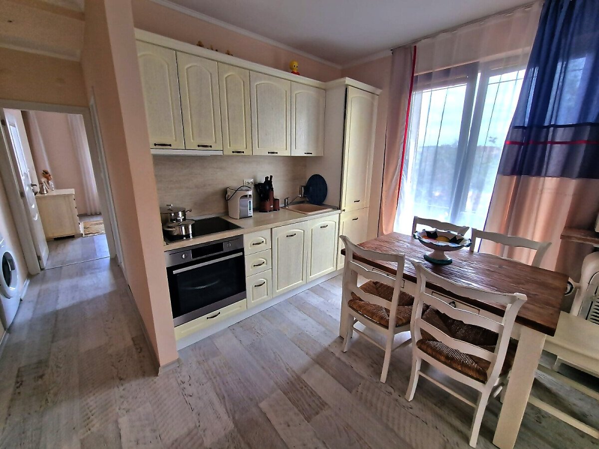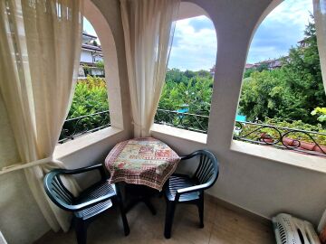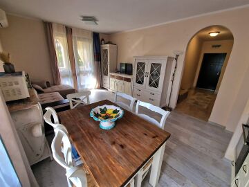 Предлагаме за продажба уютен тристаен апартамент с гледка към басейна в прекрасния комплекс „Естебан“, разположен между град Несебър и курортното селище Равда, само на 300 метра пешеходно разстояние от плажната ивица и морето. Комплексът впечатлява с висококачествено строителство, уникална архитектура и красиво озеленена територия.